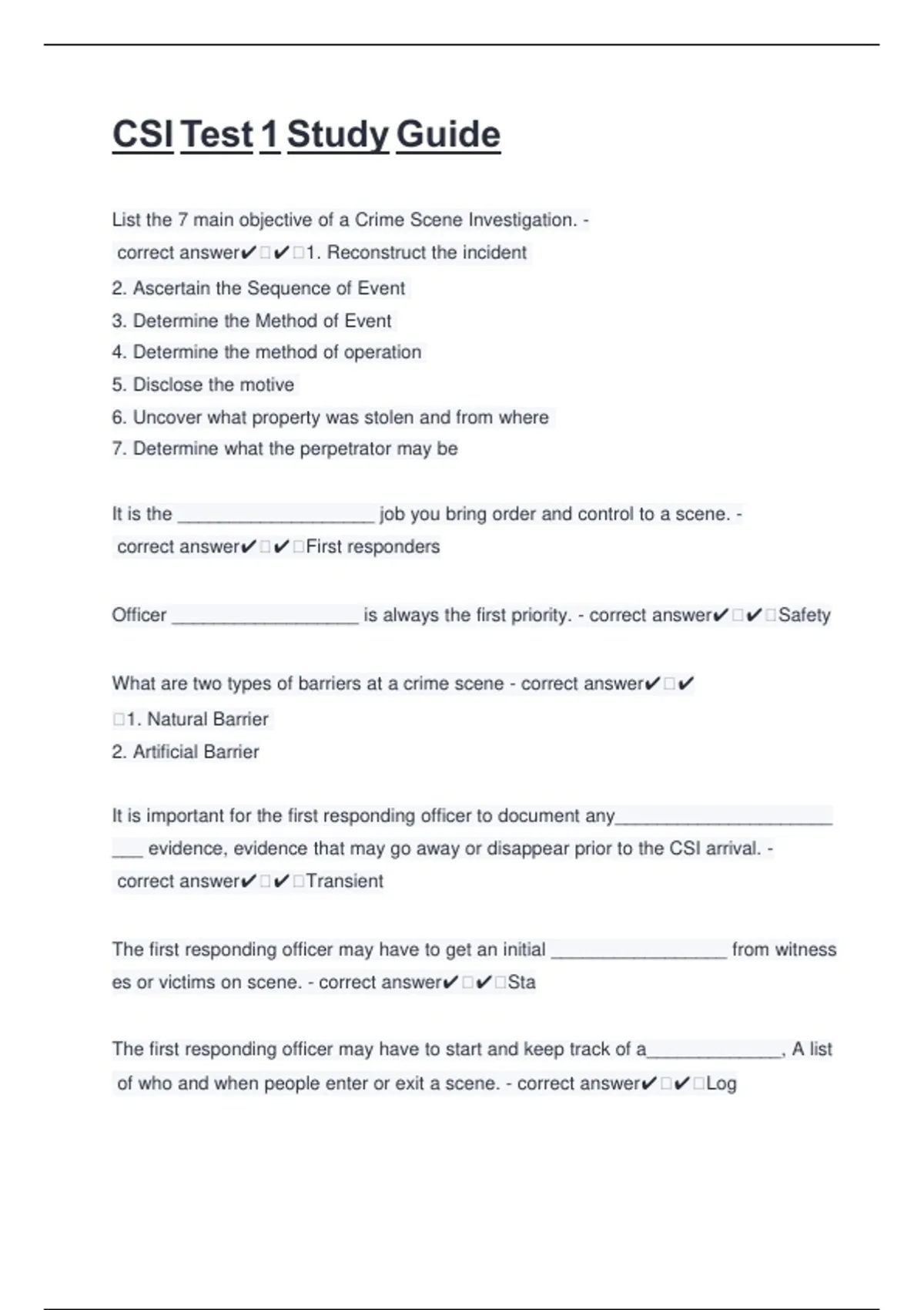 CSI Test 1 Study Guide |100% Correct Answers |Verified