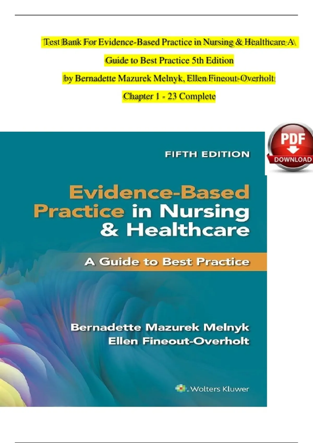 Test Bank For Evidence-Based Practice in Nursing & Healthcare, 5th Edition by Melnyk, Chapters 1 - 23 Complete