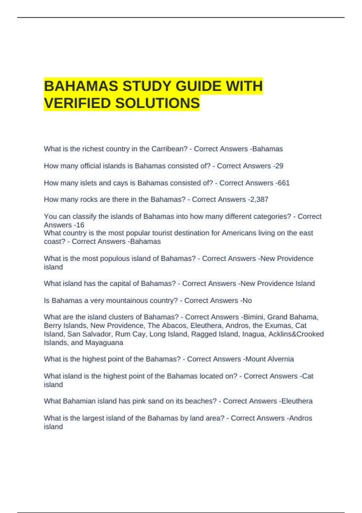 What is the highest point of the Bahamas? - Correct Answers -Mount Alvernia