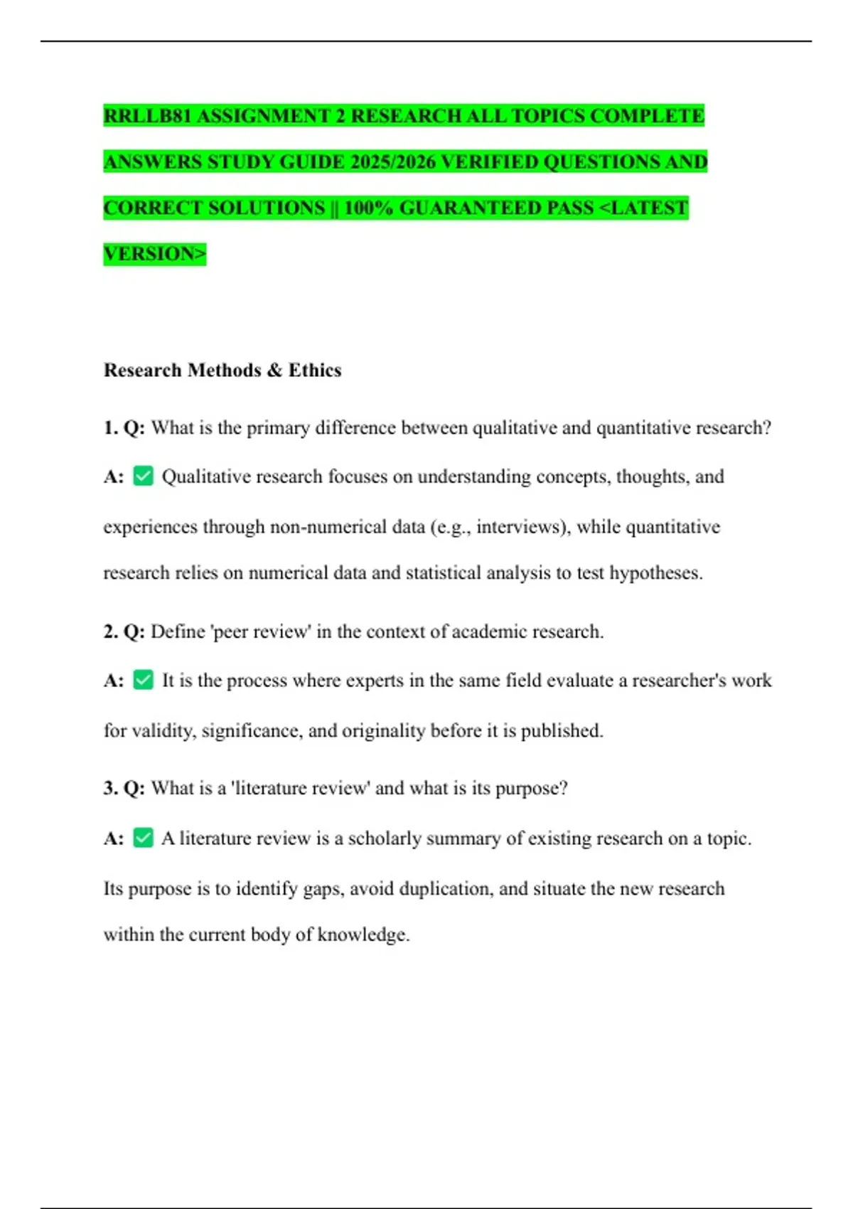 RRLLB81 ASSIGNMENT 2 RESEARCH ALL TOPICS COMPLETE ANSWERS STUDY GUIDE 2025/2026 VERIFIED QUESTIONS AND CORRECT SOLUTIONS || 100% GUARANTEED PASS <LATEST VERSION>