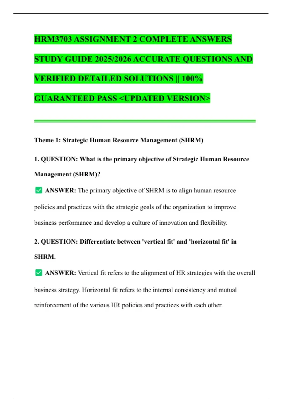 HRM3703 ASSIGNMENT 2 COMPLETE ANSWERS STUDY GUIDE 2025/2026 ACCURATE QUESTIONS AND VERIFIED DETAILED SOLUTIONS || 100% GUARANTEED PASS <UPDATED VERSION>