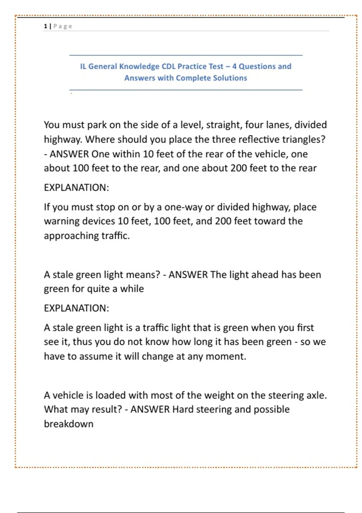 IL General Knowledge CDL Practice Test – 4 Questions and Answers with Complete Solutions