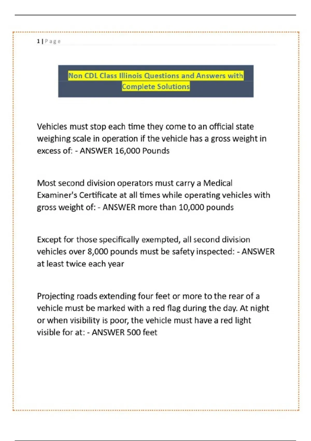 Non CDL Class Illinois Questions and Answers with Complete Solutions