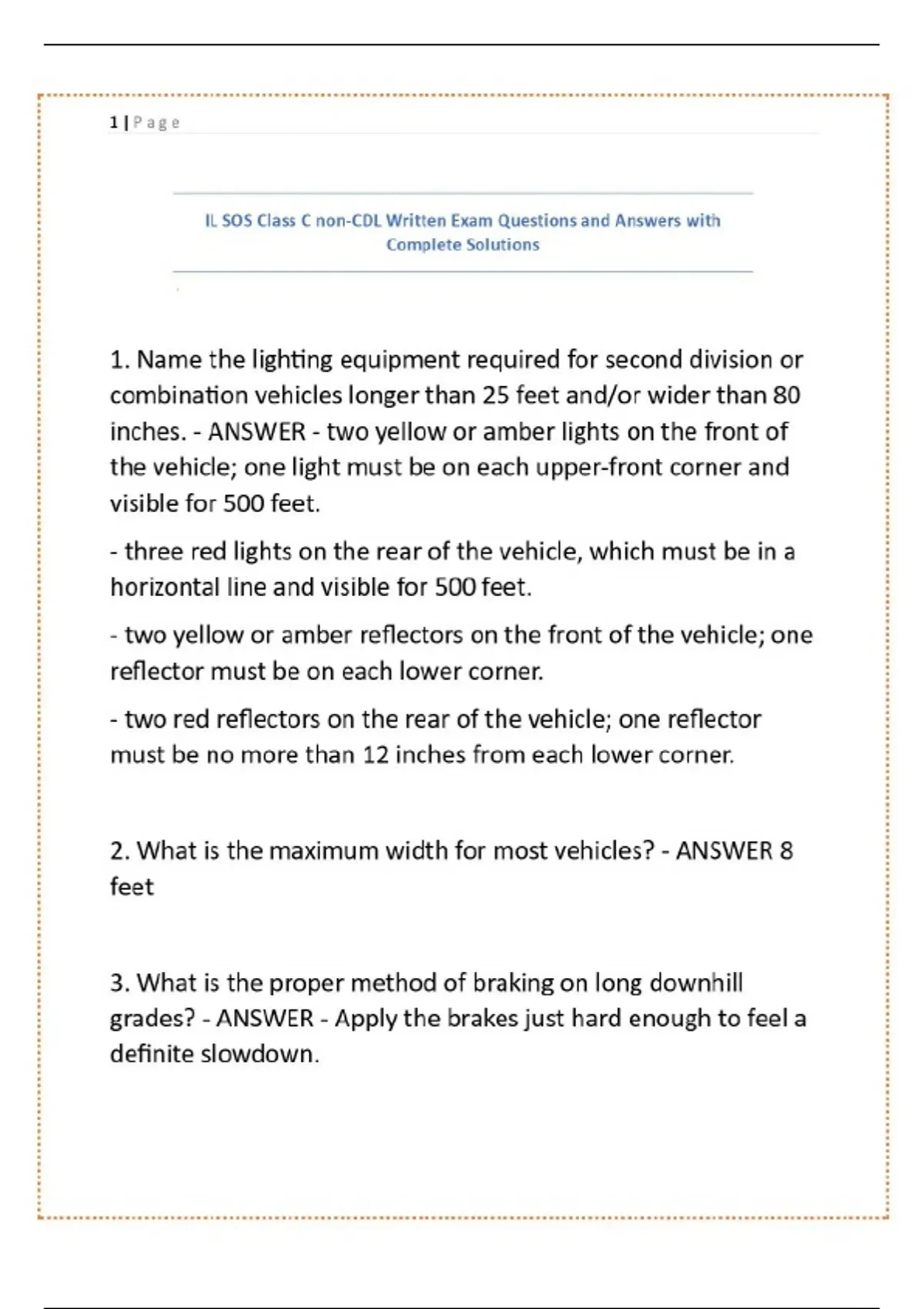 IL SOS Class C non-CDL Written Exam Questions and Answers with Complete Solutions