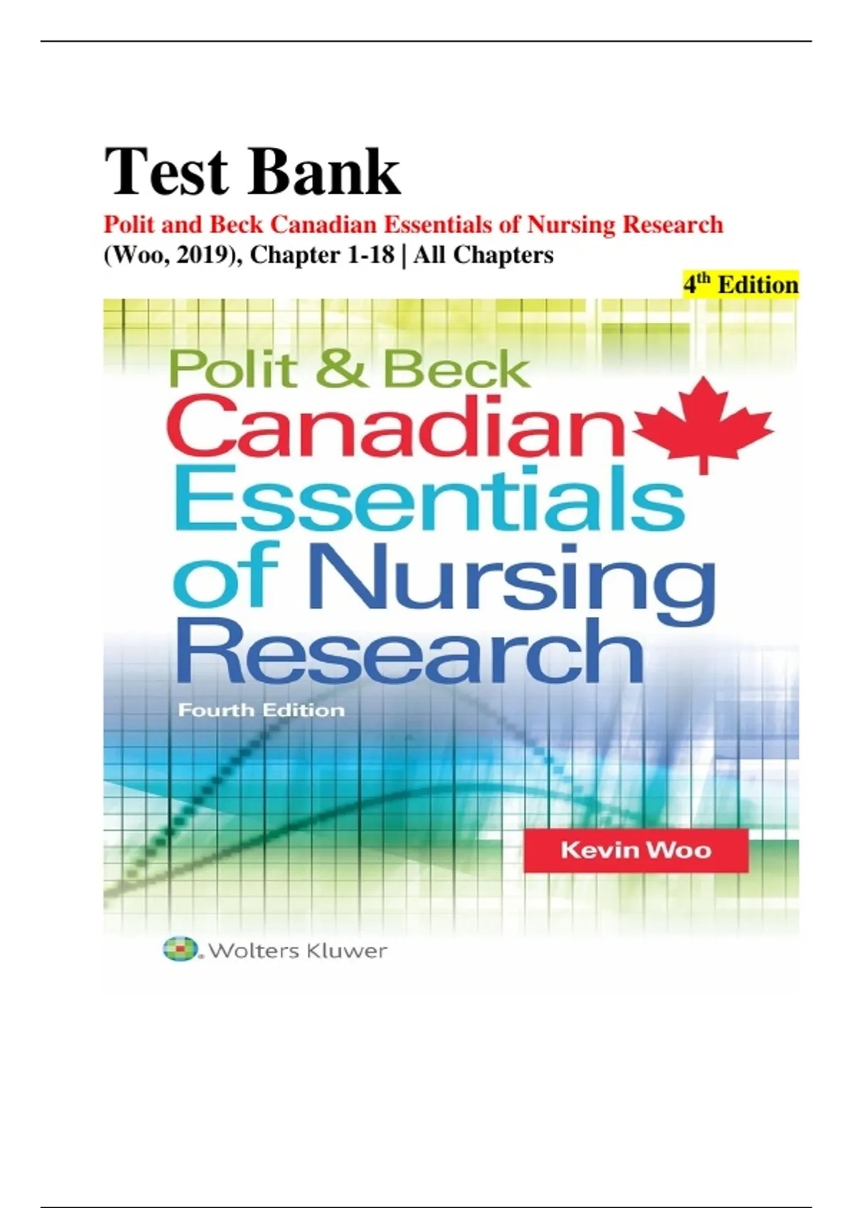 Polit & Beck Canadian Essentials of Nursing Research 4th Edition (Woo) Test Bank – Complete Chapters 1–18 with Verified Answers