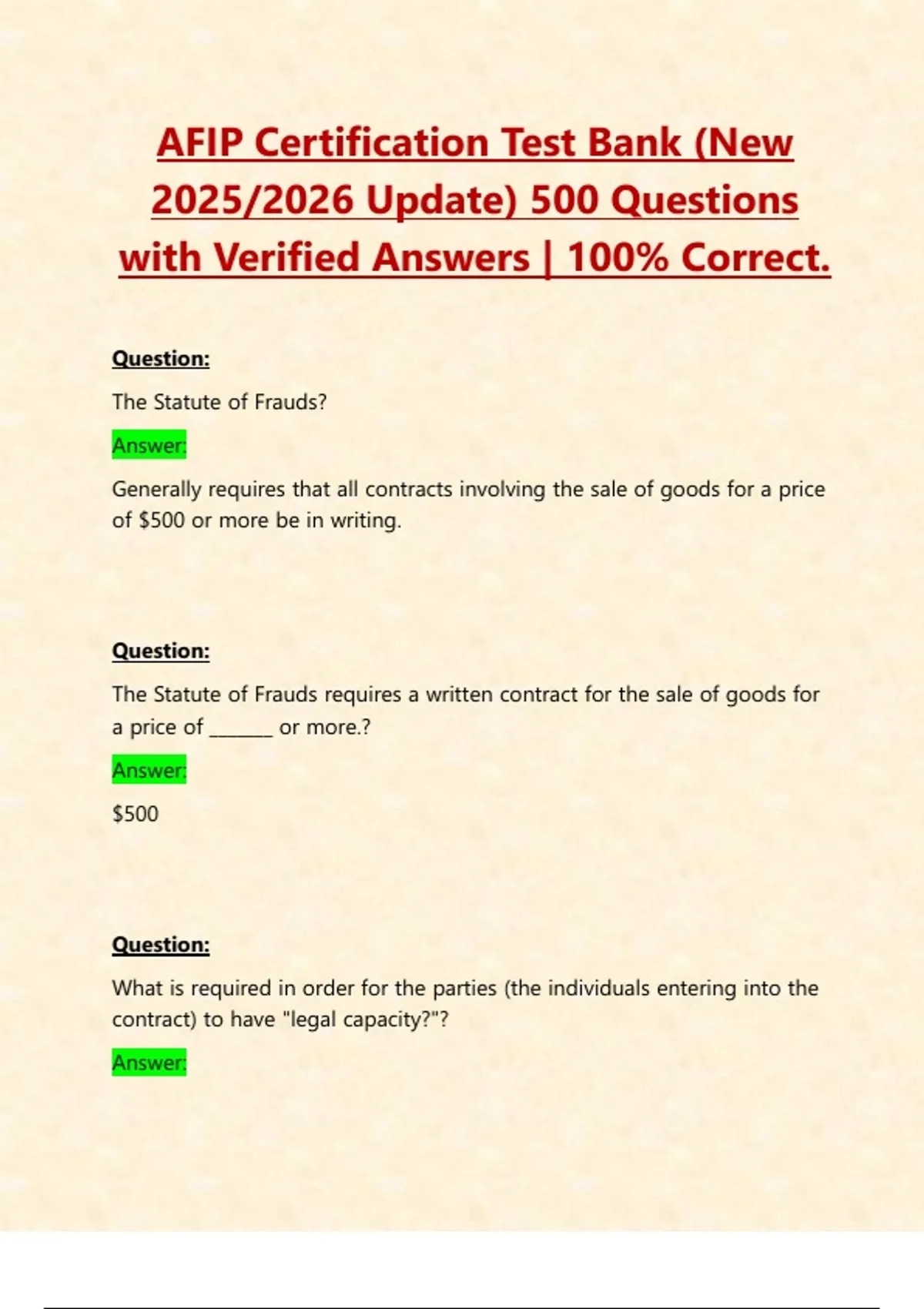 AFIP Certification Test Bank (New 2025/2026 Update) 500 Questions with Verified Answers | 100% Correct.