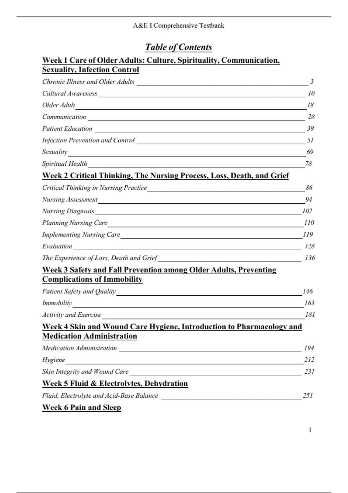 Week 1 Care of Older Adults: Culture, Spirituality, Communication,