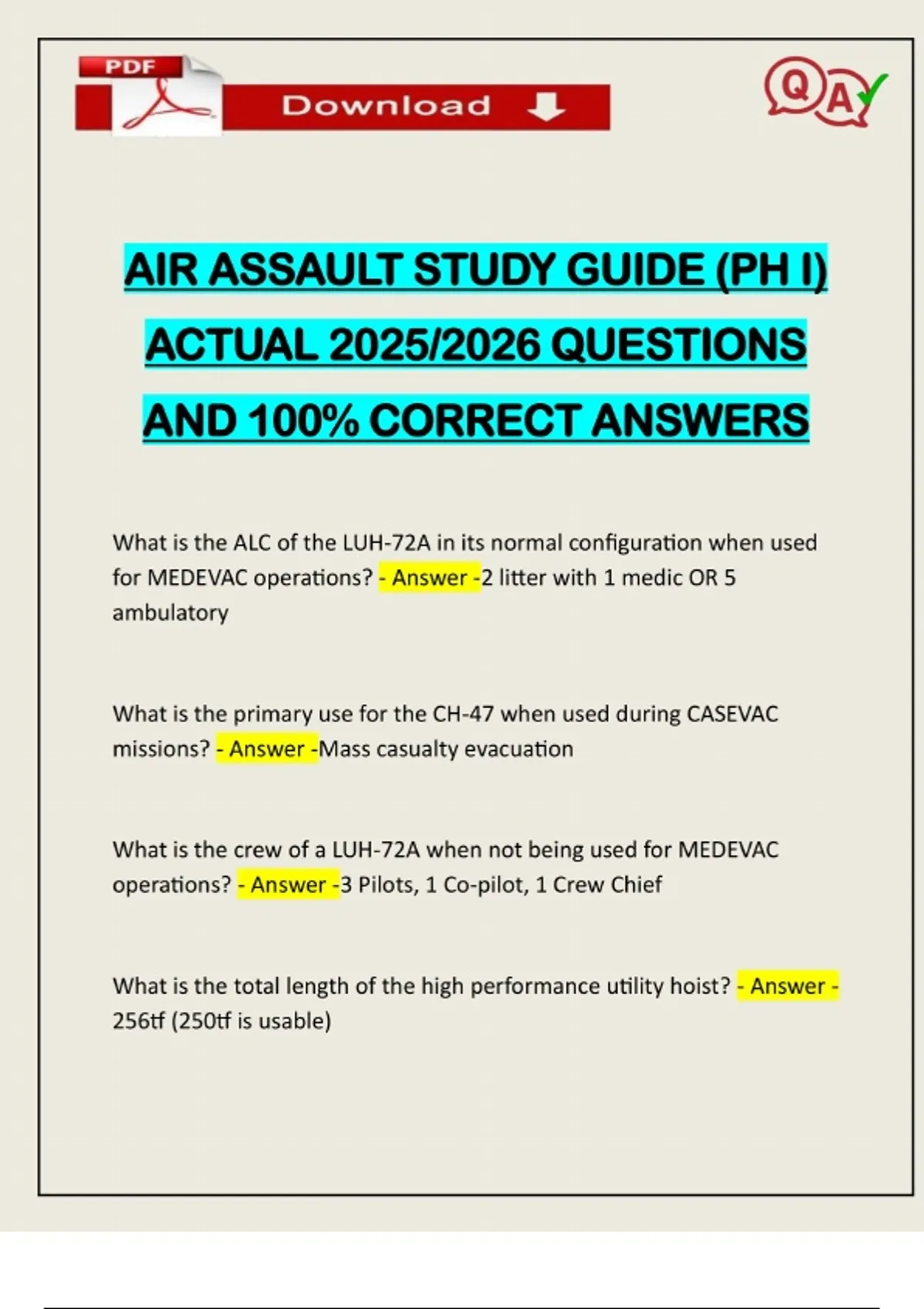 AIR ASSAULT STUDY GUIDE (PH I) ACTUAL 2025/2026 QUESTIONS AND 100% CORRECT ANSWERS