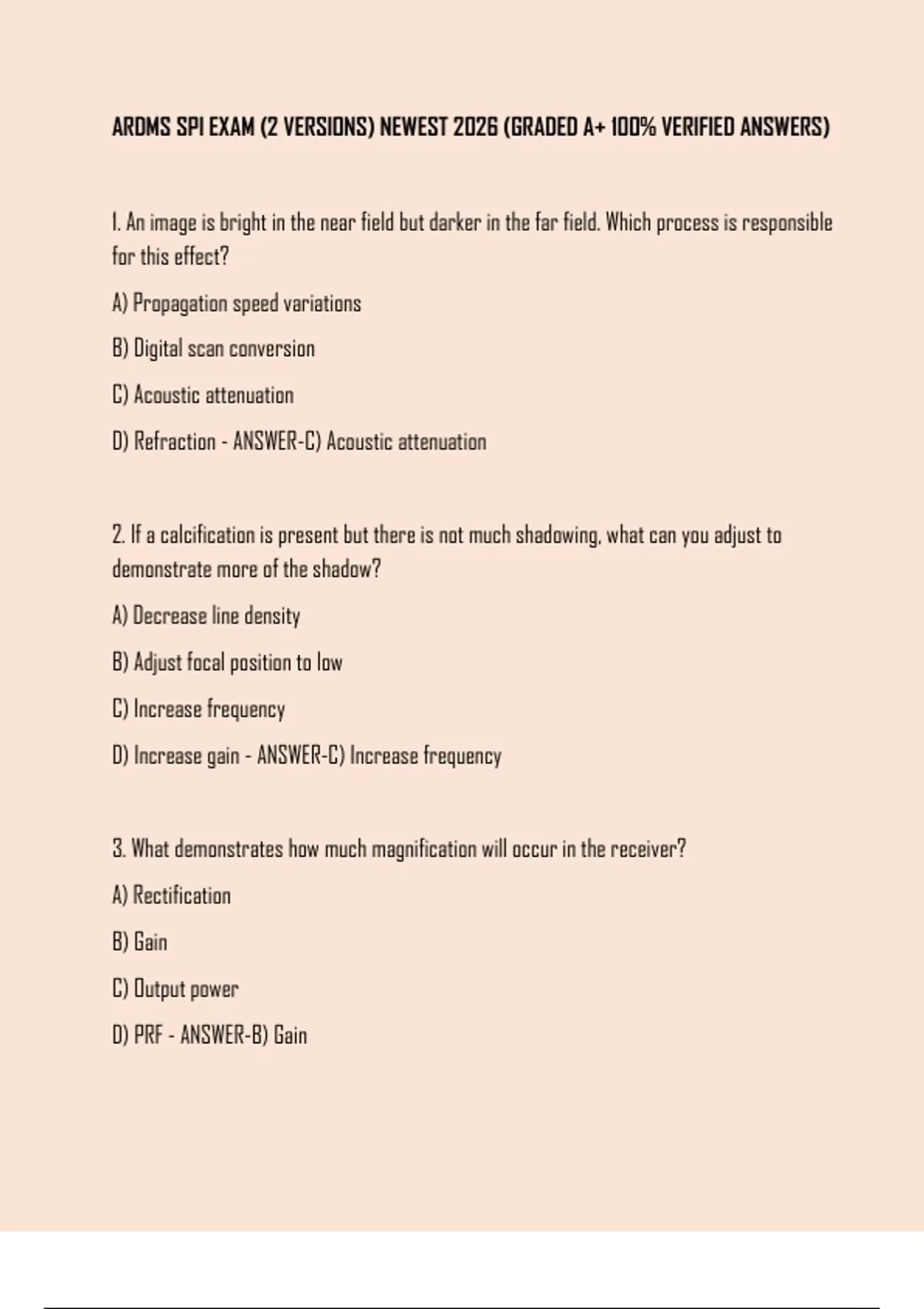 ARDMS SPI Exam 2026 (2 Versions) | Updated Test Questions with 100% Verified A+ Answers (Newest Edition)