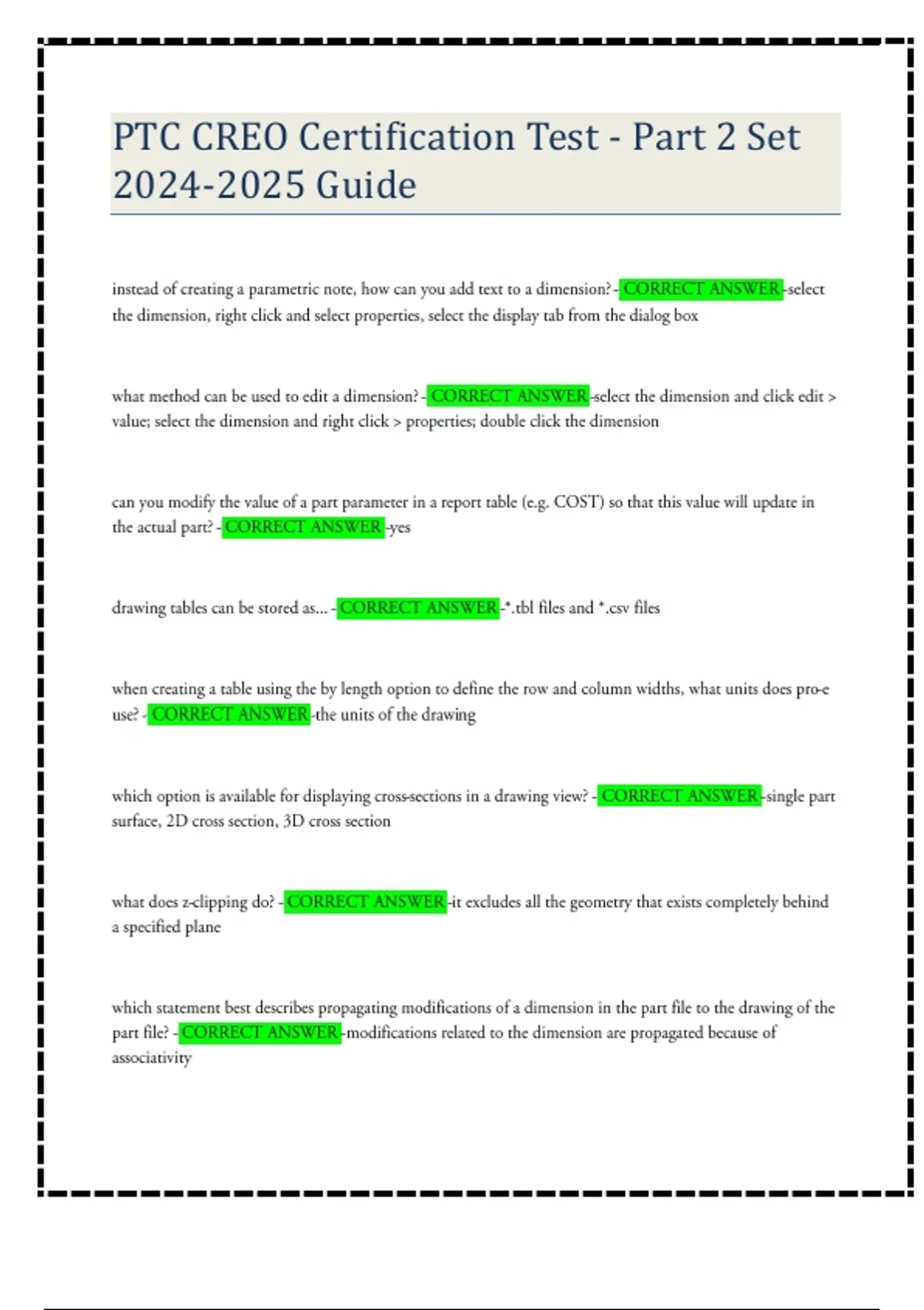 ptc creo certification test part 2 set