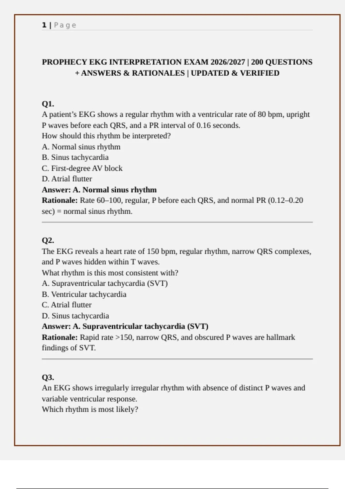 PROPHECY EKG INTERPRETATION EXAM 2026/2027 | 200 QUESTIONS