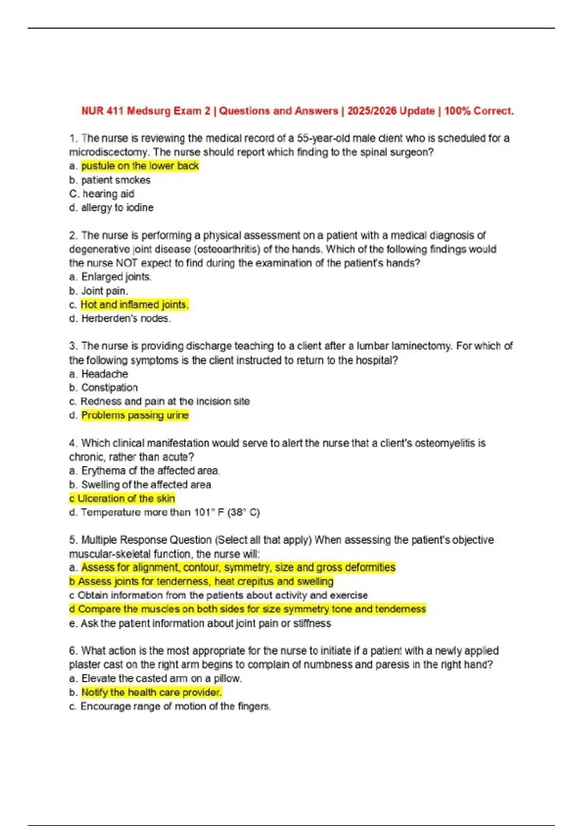 NUR 411 Medsurg Exam 2 | Questions and Answers | 2025/2026 Update | 100% Correct.