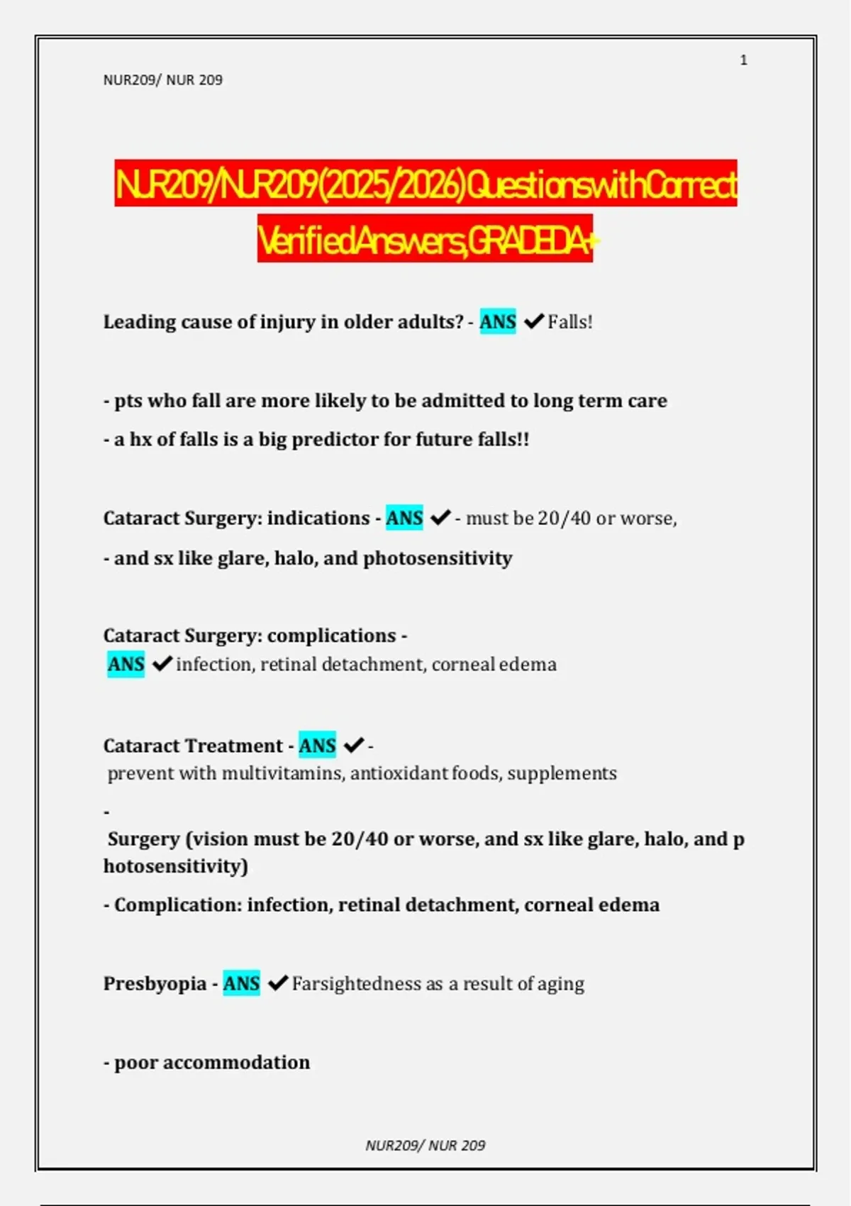 NUR209/NUR209(2025/2026)QuestionswithCorrect