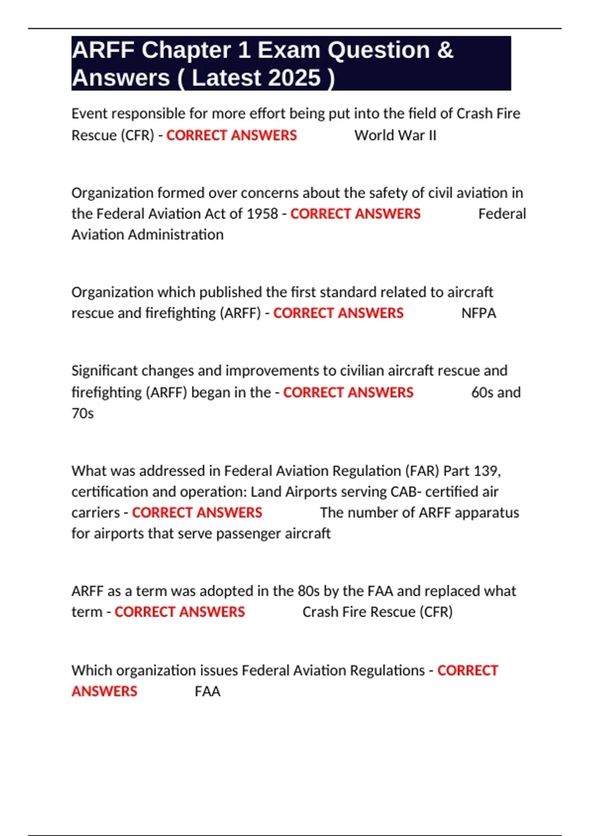 rescue and firefighting (ARFF) - CORRECT ANSWERS ✔✔NFPA
