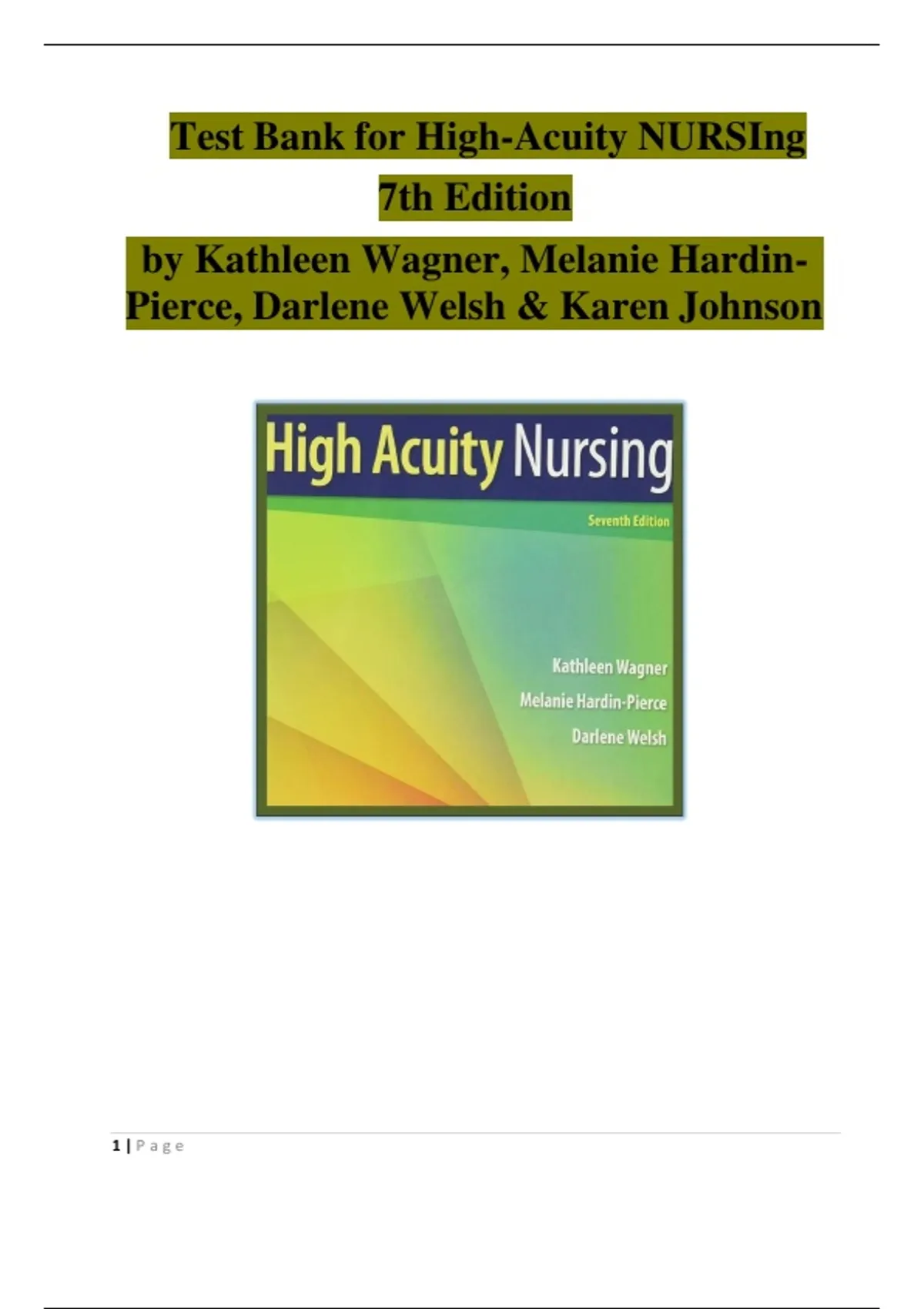Test Bank For High-Acuity Nursing 7th Edition by( Kathleen Wagner 2025)COMPLETE EDITION