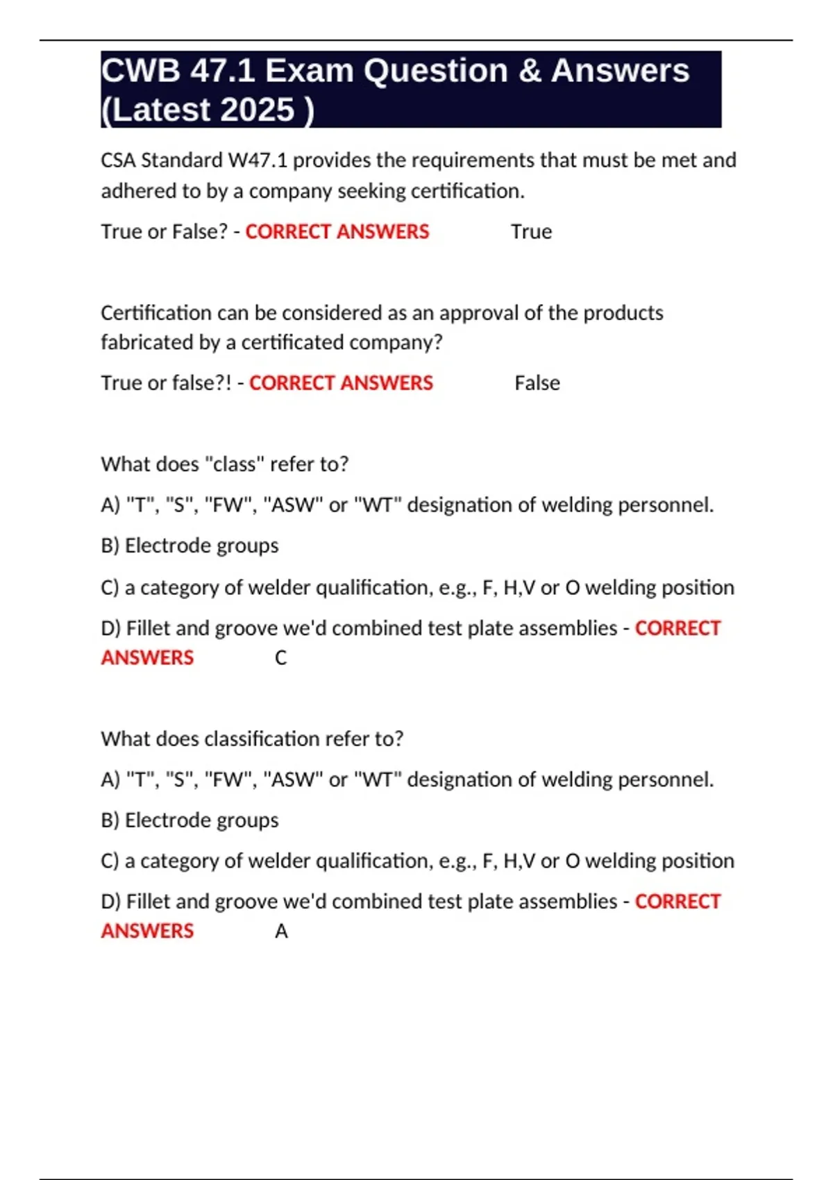 CWB 47.1 Exam Question & Answers