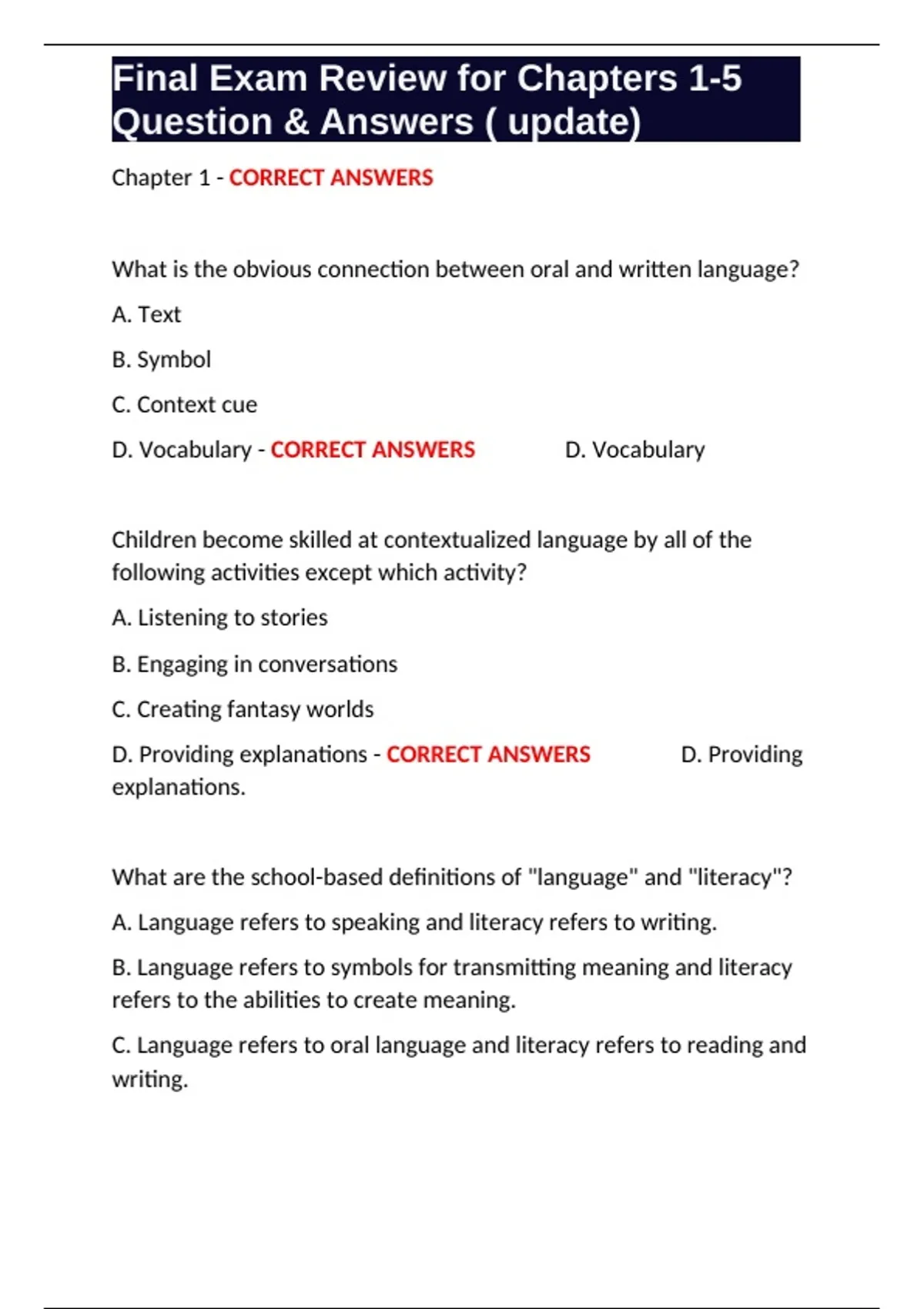 D. Vocabulary - CORRECT ANSWERS ✔✔D. Vocabulary