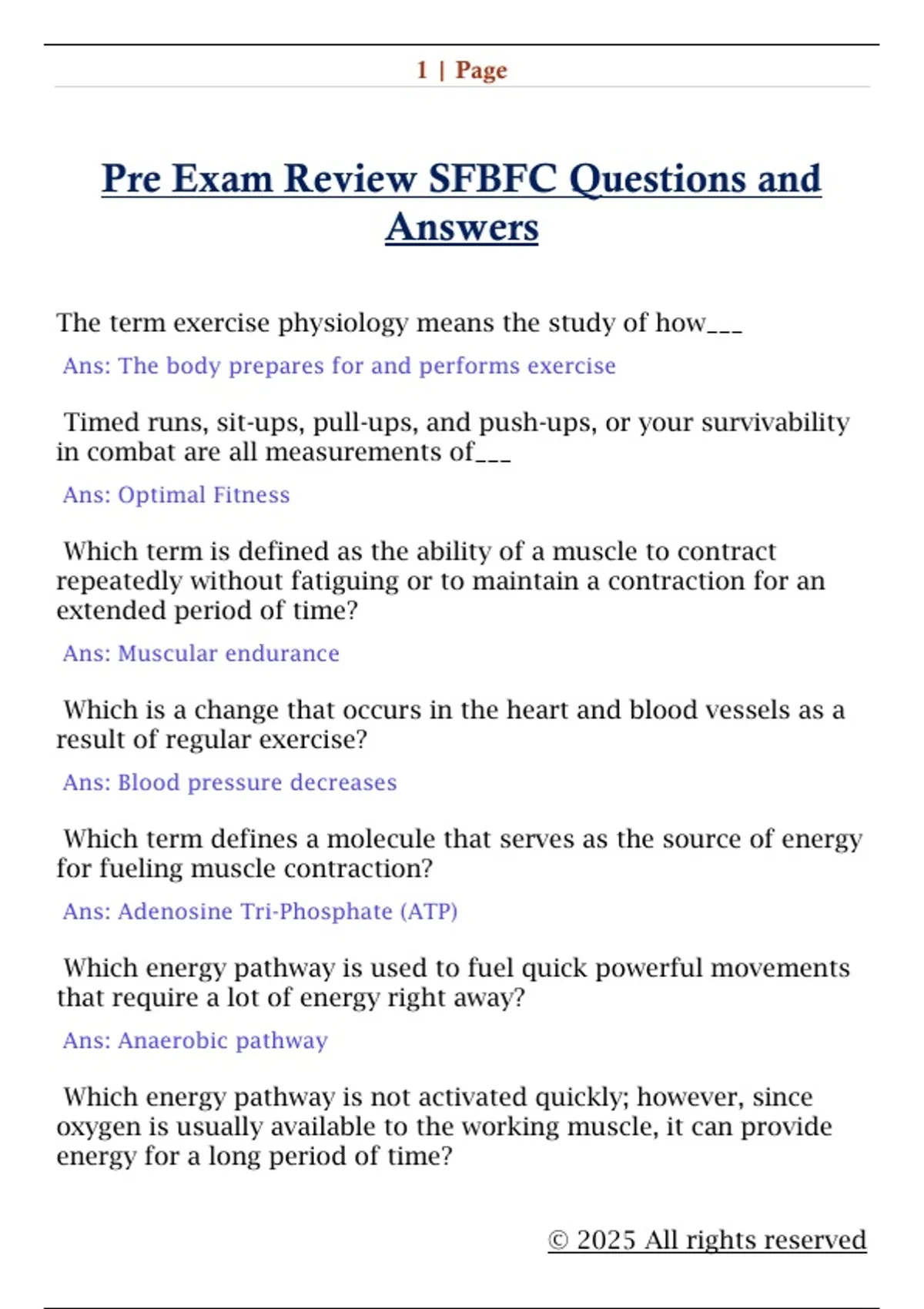 Pre Exam Review SFBFC Questions and Answers