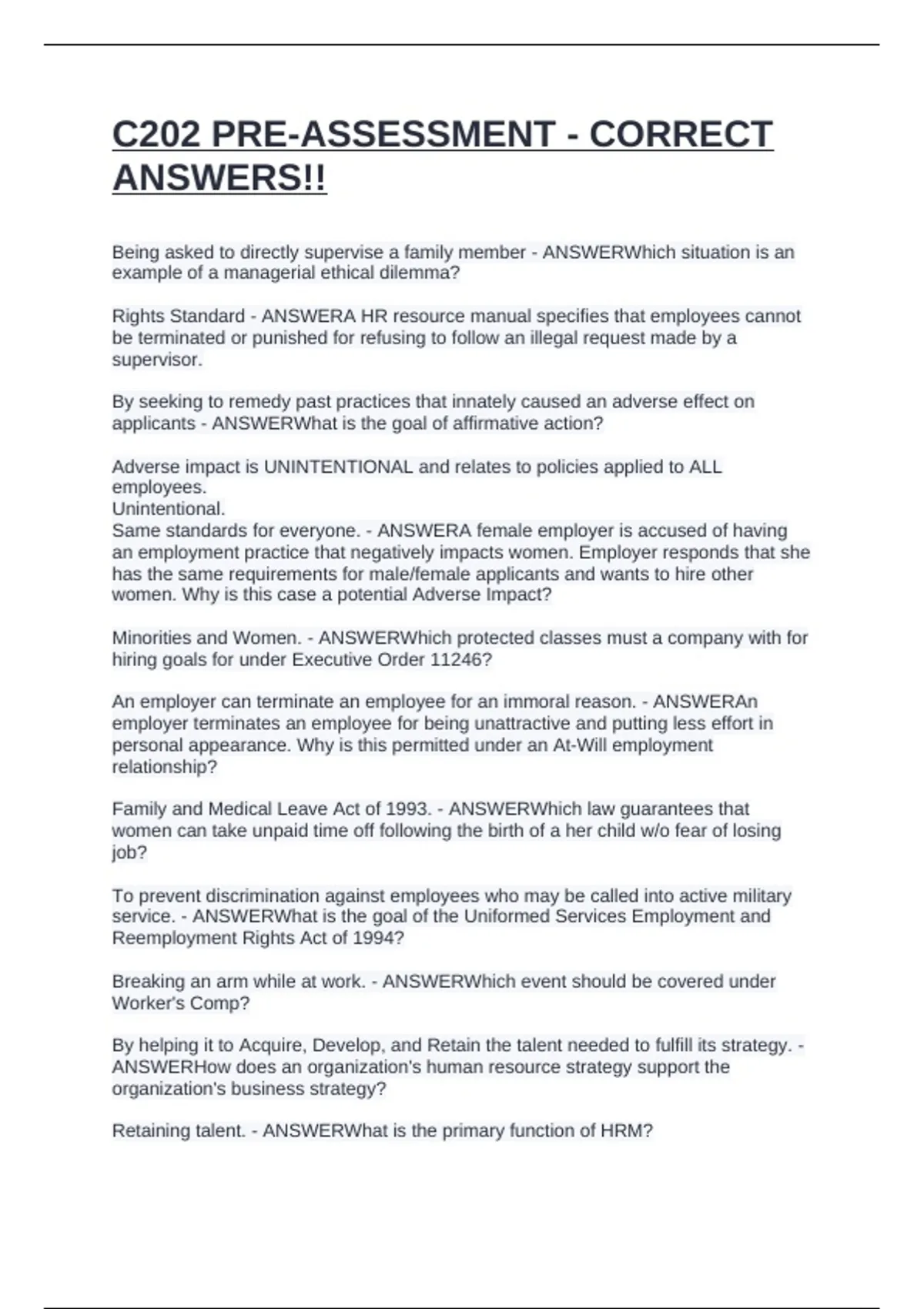 Rights Standard - ANSWERA HR resource manual specifies that employees cannot