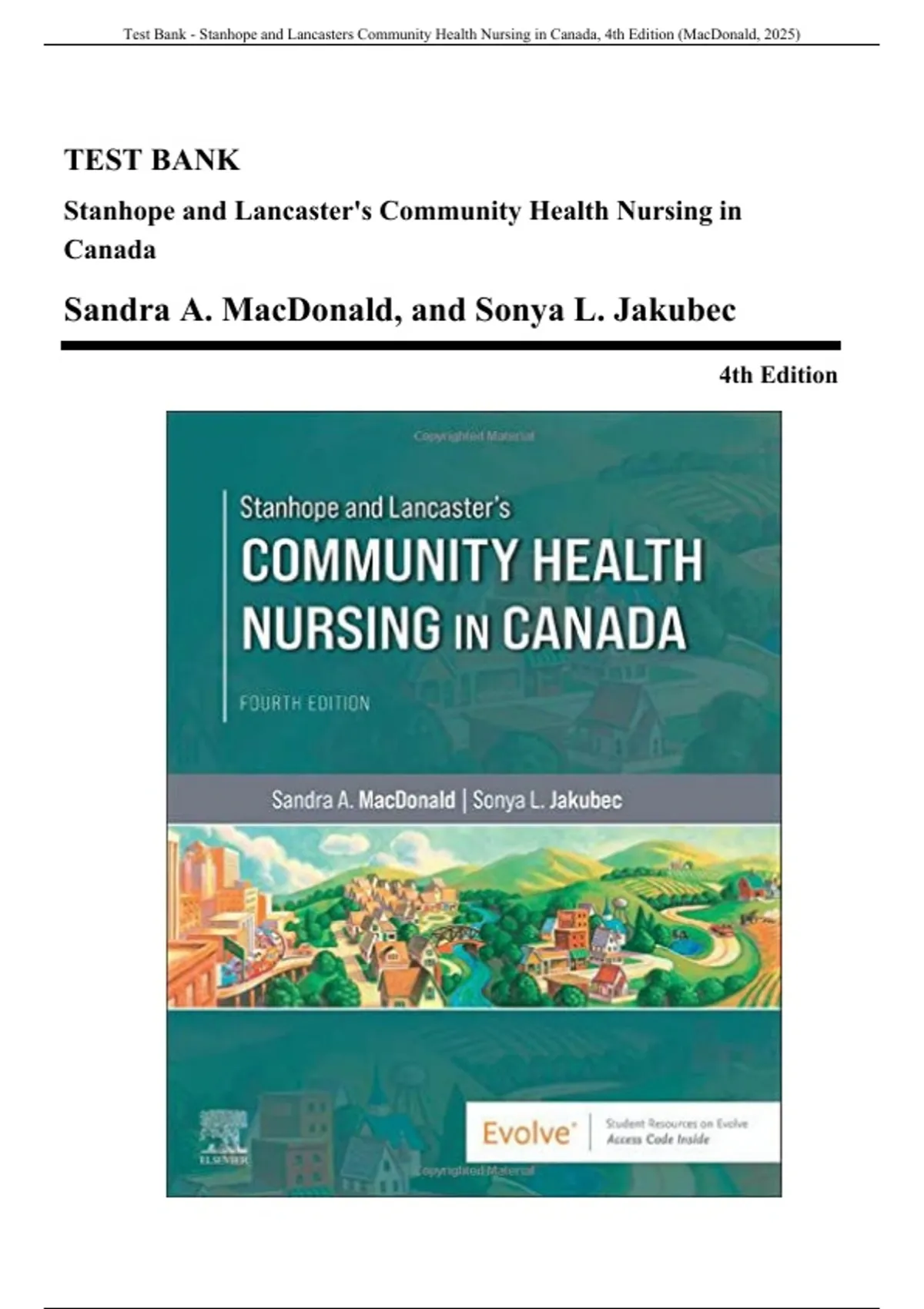 Test Bank - Stanhope and Lancaster’s Community Health Nursing in Canada, 4th Edition (MacDonald, 2025)