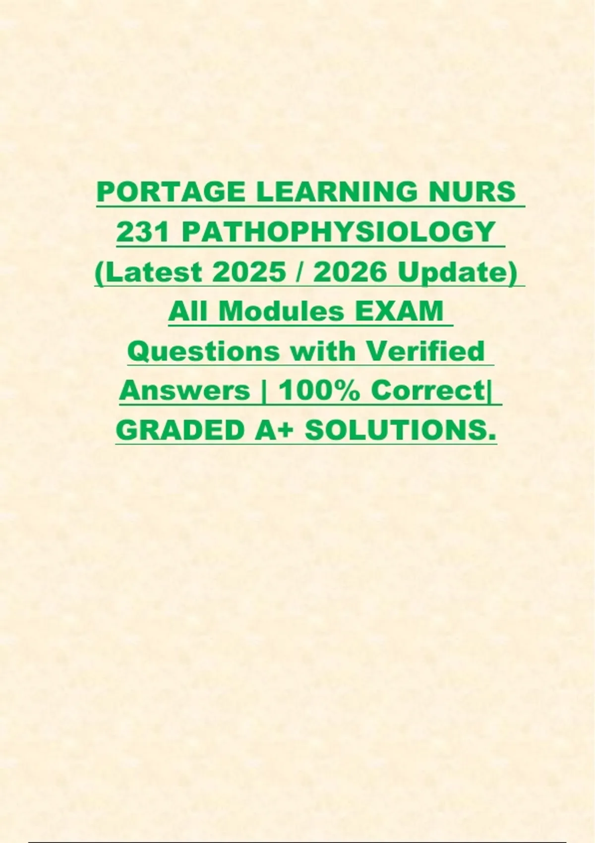 PORTAGE LEARNING NURS 231 PATHOPHYSIOLOGY (Latest 2025 / 2026 Update) All Modules EXAM Questions with Verified Answers | 100% Correct| GRADED A+ SOLUTIONS.