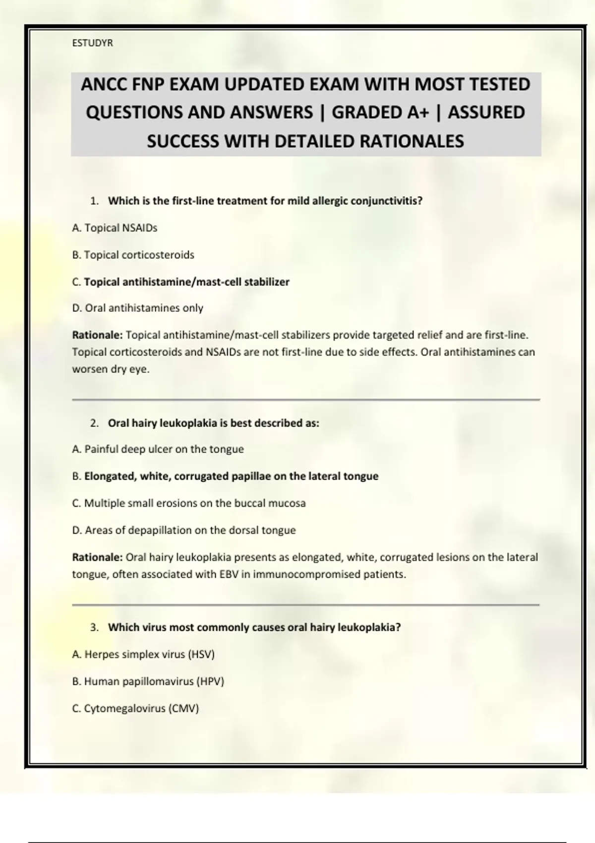 ANCC FNP EXAM UPDATED EXAM WITH MOST TESTED QUESTIONS AND ANSWERS | GRADED A+ | ASSURED SUCCESS WITH DETAILED RATIONALES