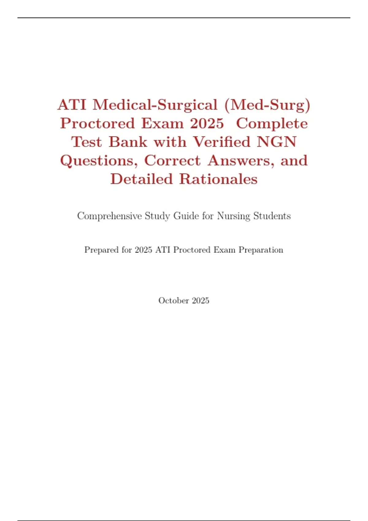 ATI Medical-Surgical (Med-Surg) Proctored Exam. It includes over 200 Next Generation