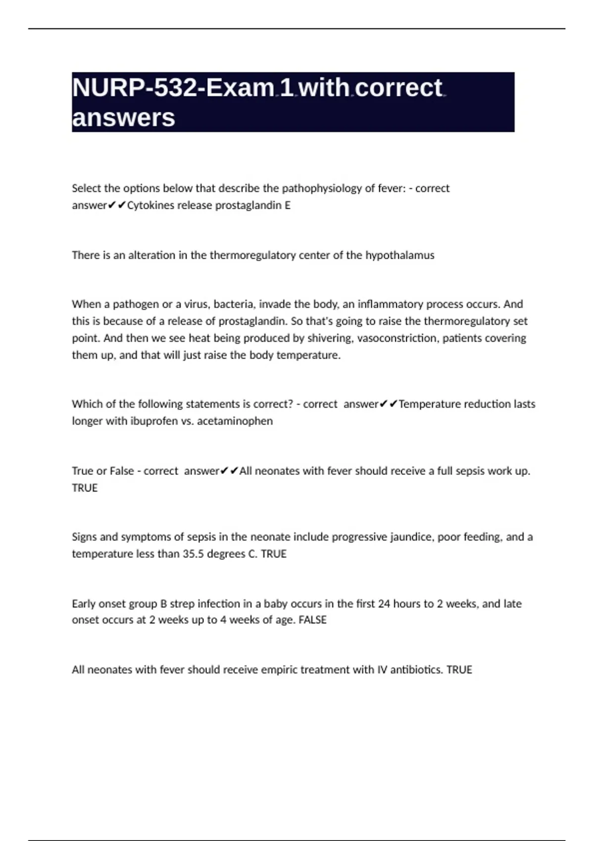 Pyrogens - correct answer✔✔Released by the immune system in response to a bacterial or
