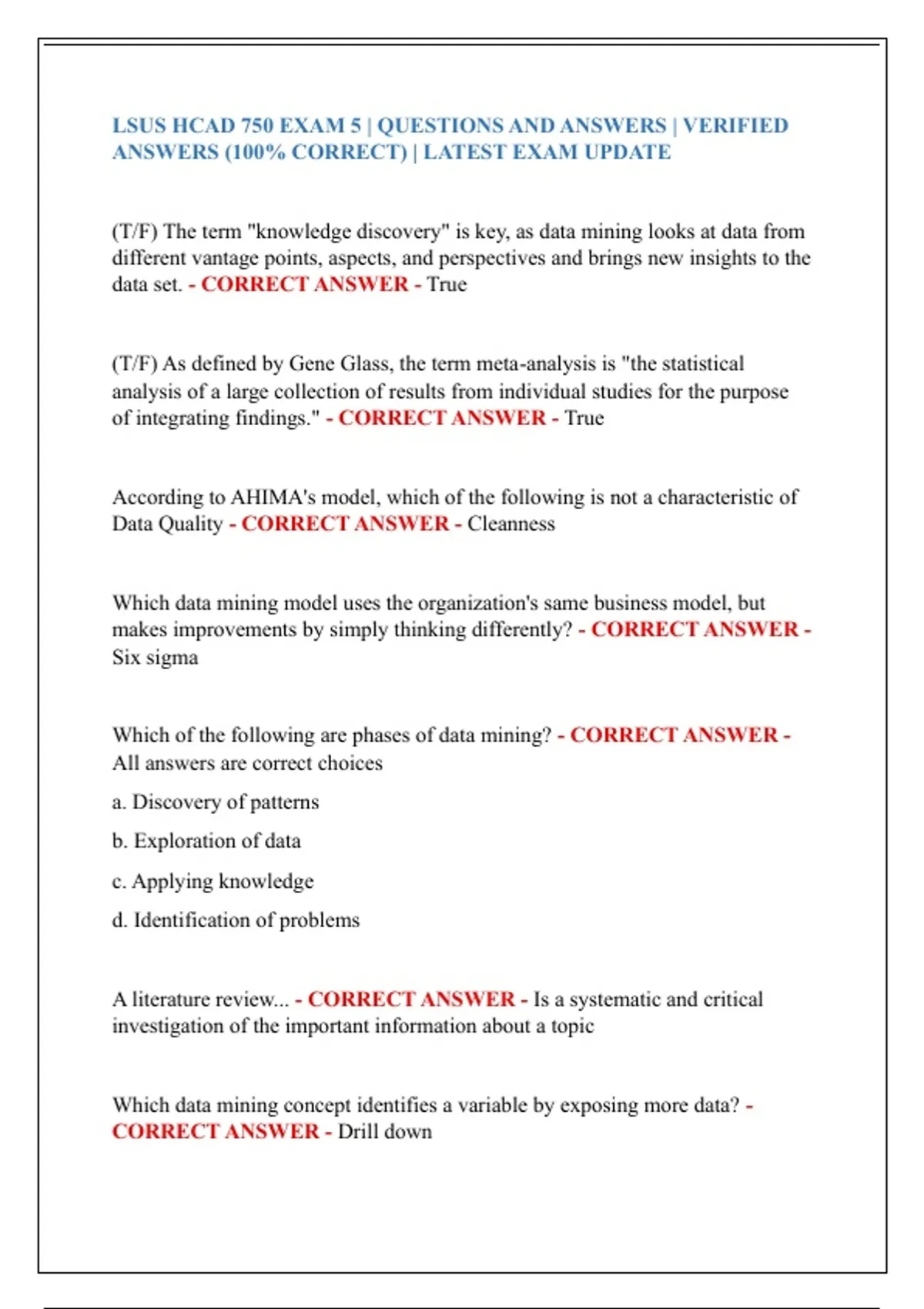 LSUS HCAD 750 EXAM 5 | QUESTIONS AND ANSWERS | VERIFIED ANSWERS (100% CORRECT) | LATEST EXAM UPDATE