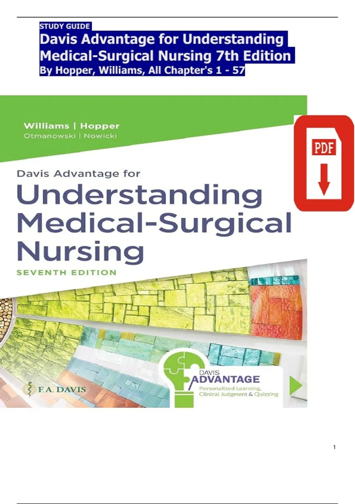 Davis Advantage for Understanding Medical-Surgical Nursing – Hopper & Williams, 7th Edition | Complete Study Guide (Chapters 1–57)