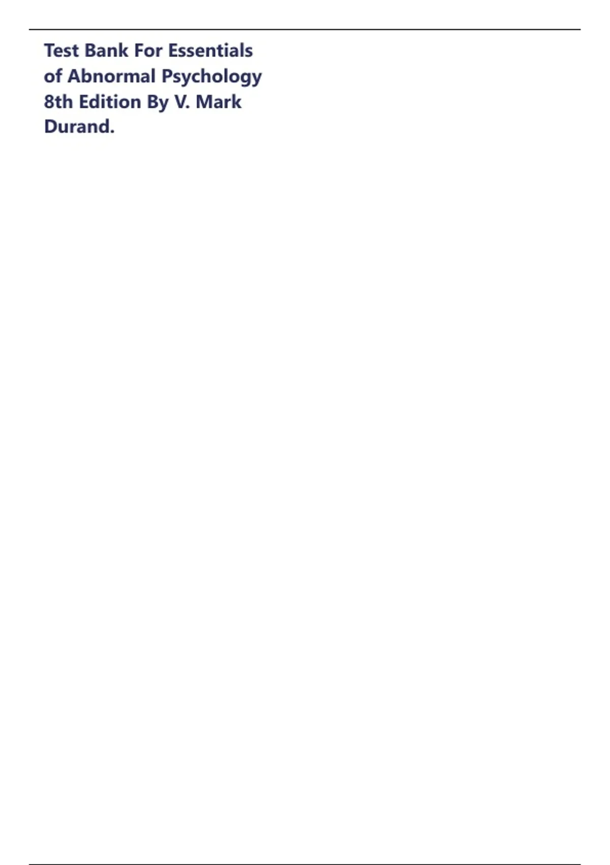 Test Bank For Essentials of Abnormal Psychology 8th Edition By V. Mark Durand;LATEST EDITION (2025)