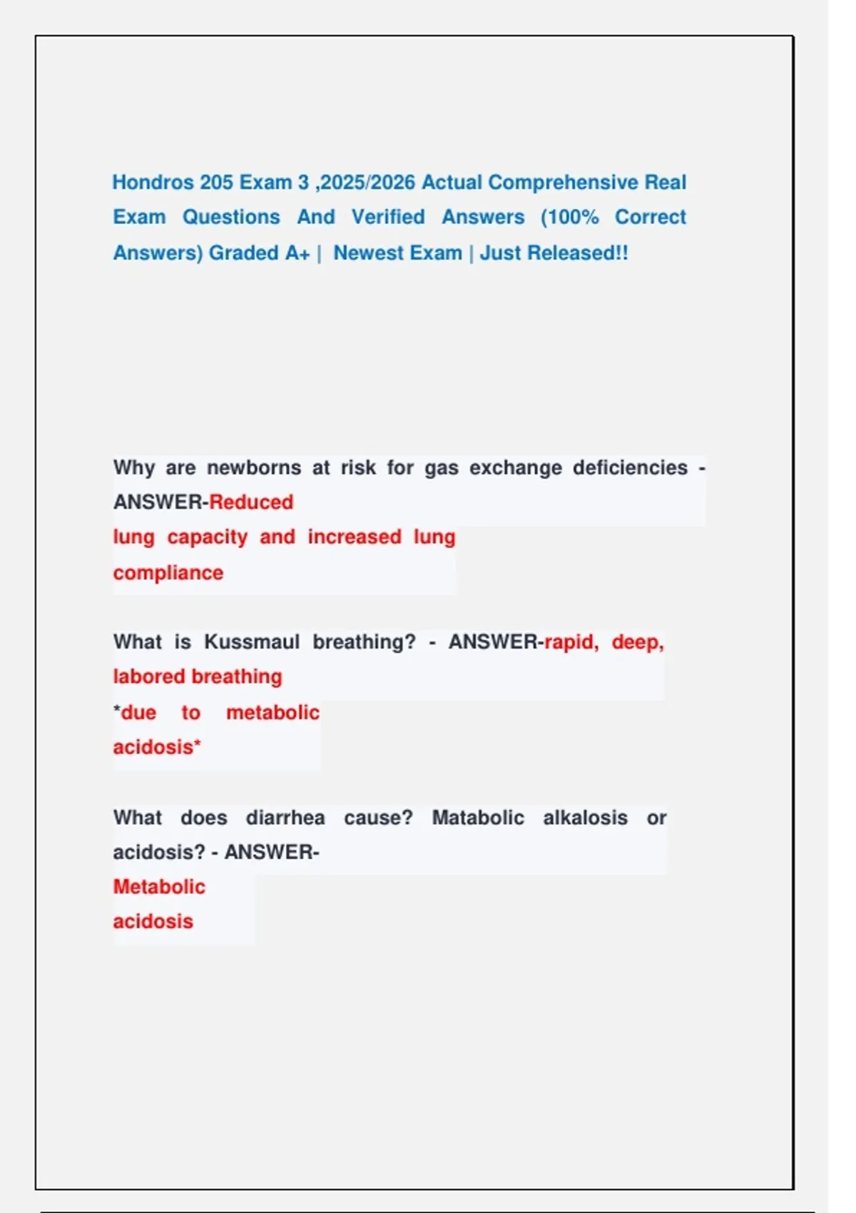 Hondros 205 Exam 3 ,2025/2026 Actual Comprehensive Real