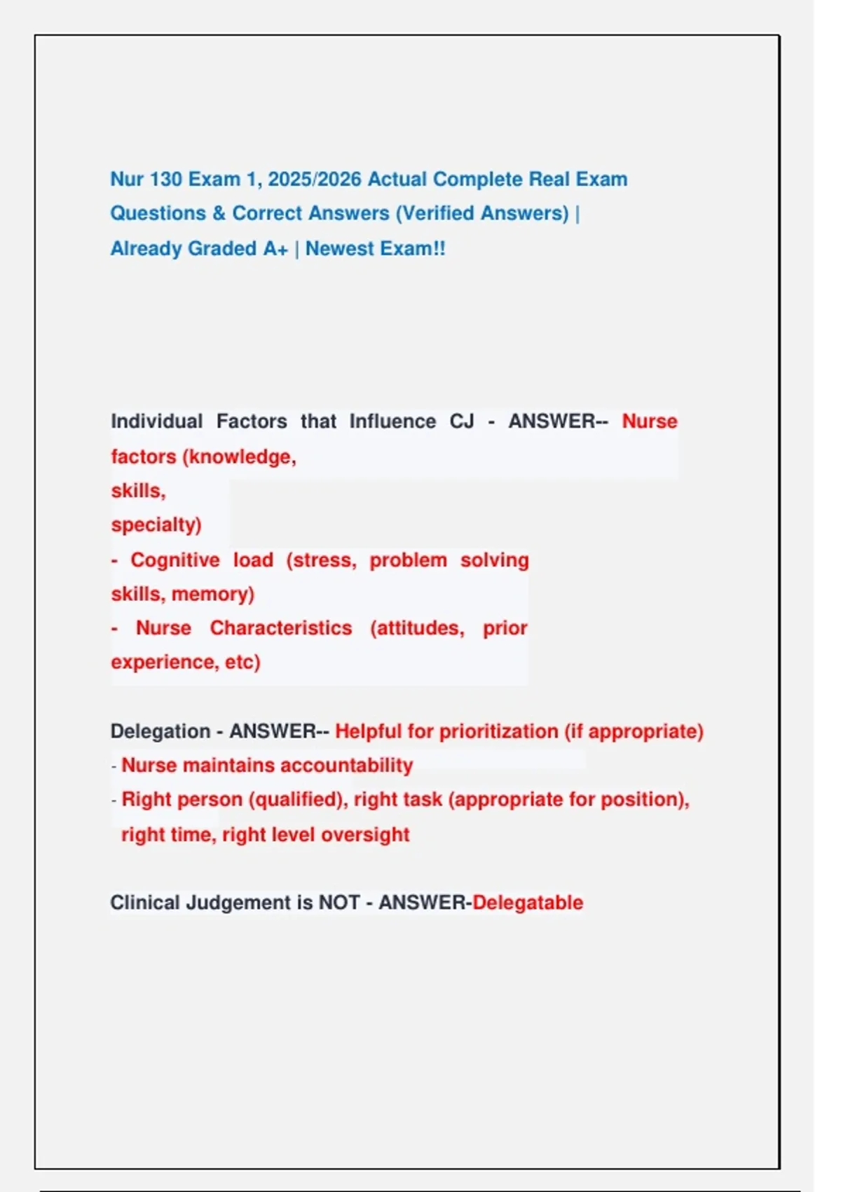 Already Graded A+ | Newest Exam!!