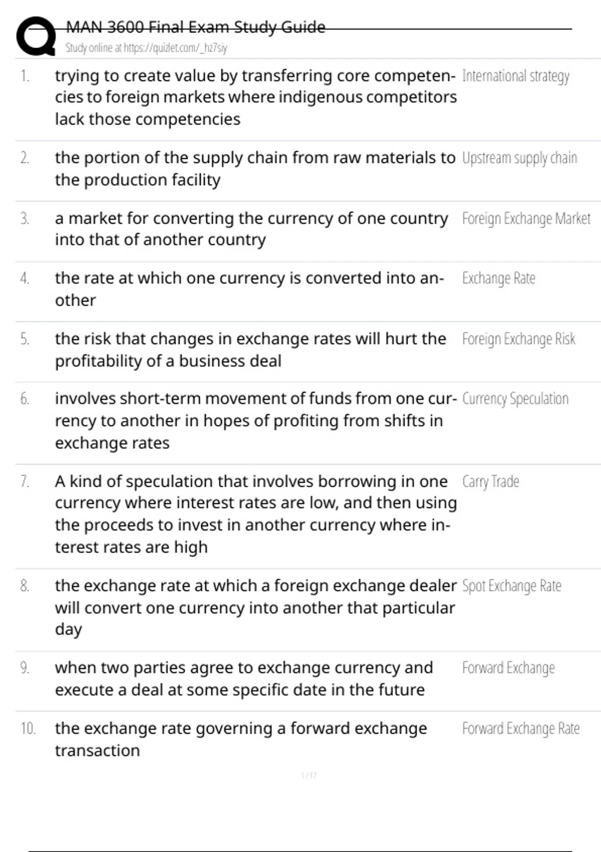 MAN 3600 Final Exam Study Guide Actual study Questions and Answers