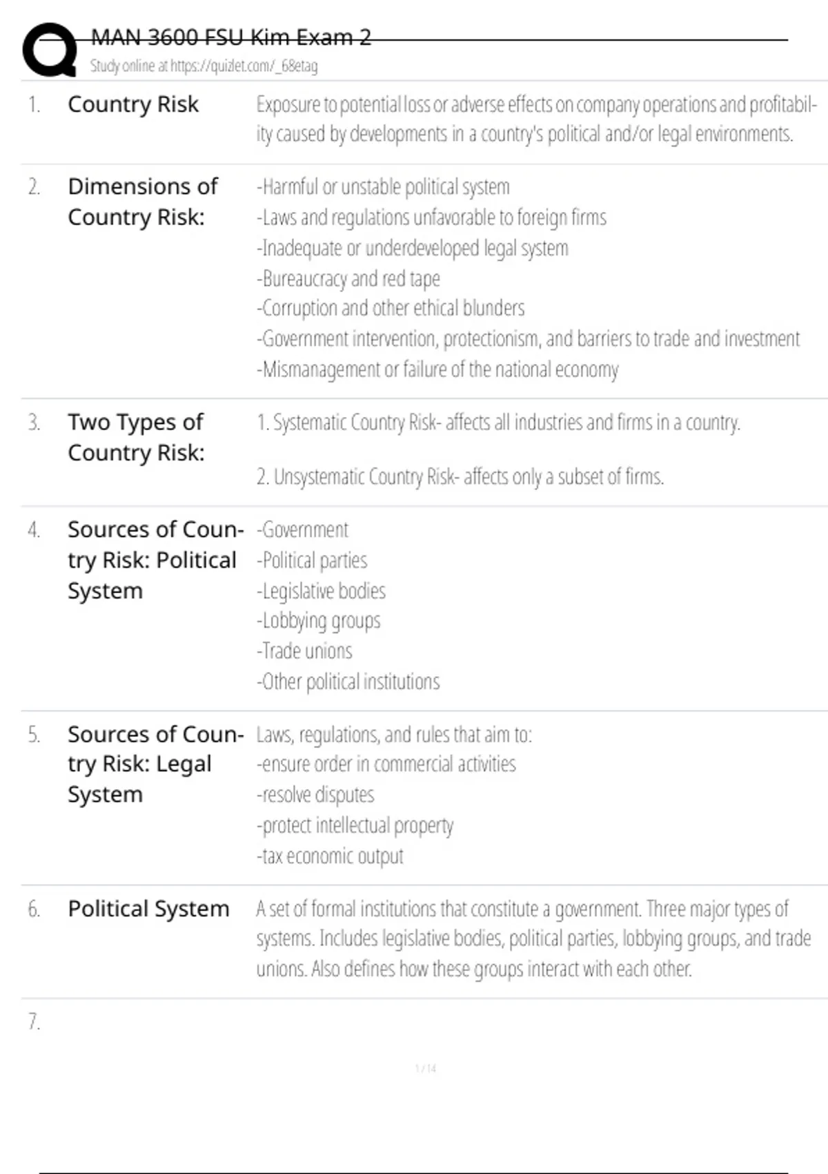 1. Country Risk Exposure to potential loss or adverse effects on company operations and profitabil-