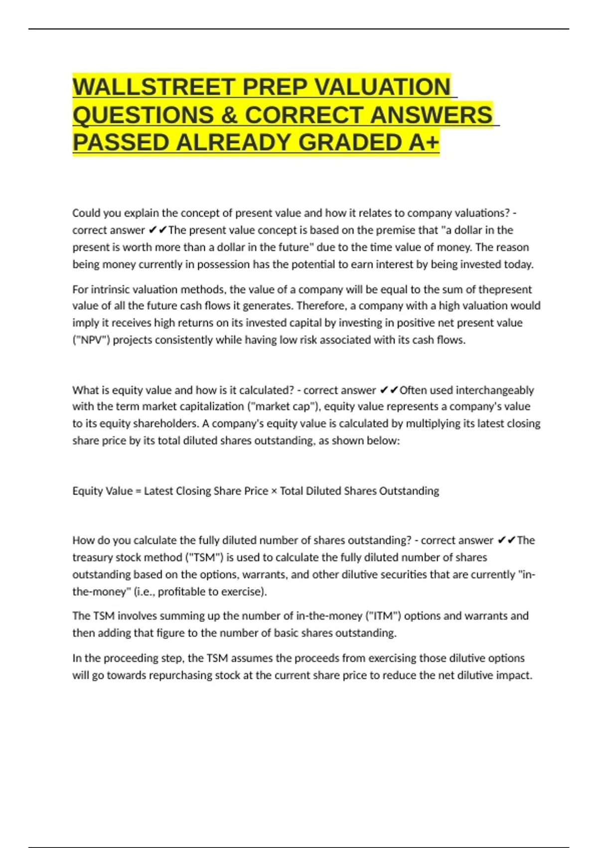 WALLSTREET PREP VALUATION