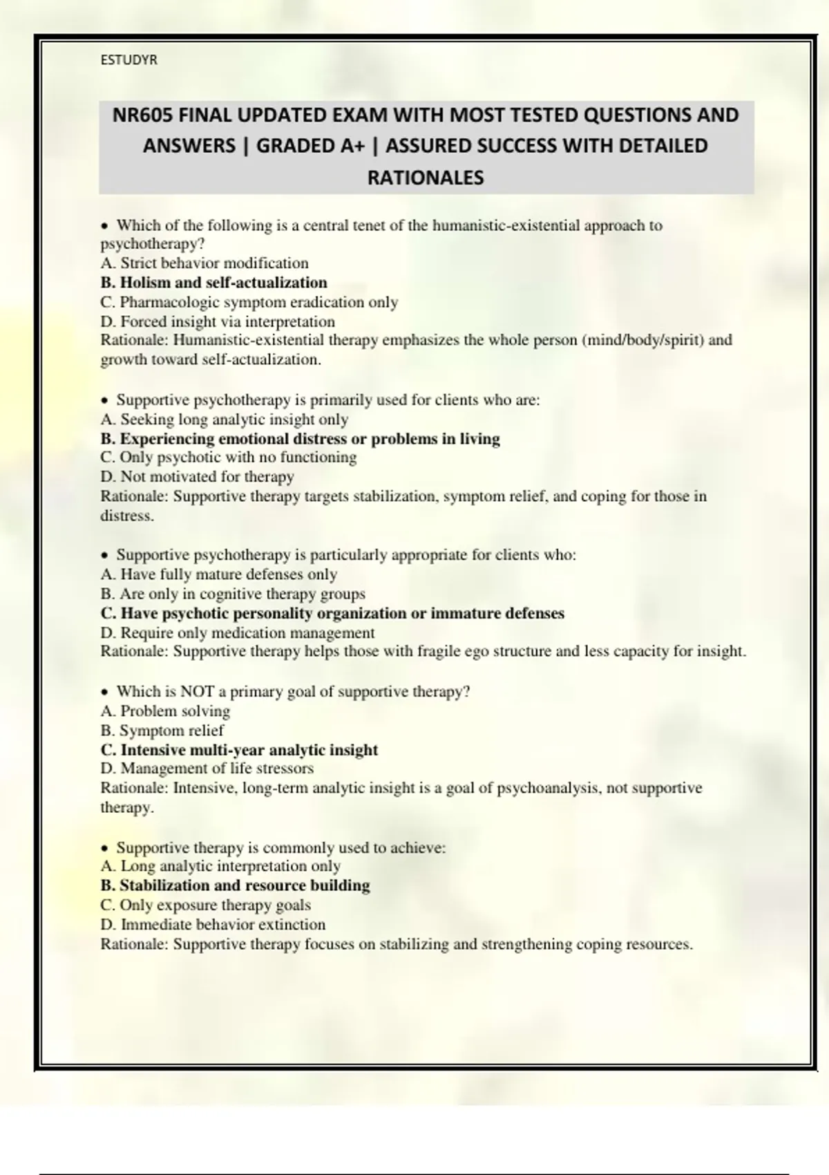 NR605 FINAL UPDATED EXAM WITH MOST TESTED QUESTIONS AND ANSWERS | GRADED A+ | ASSURED SUCCESS WITH DETAILED RATIONALES