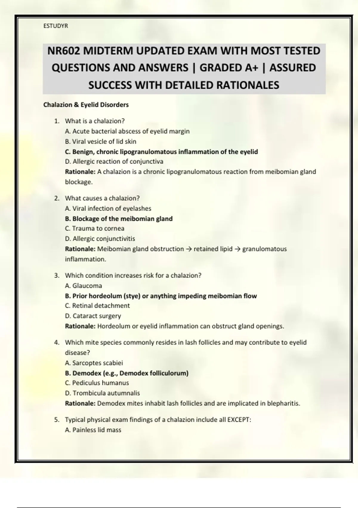 NR602 MIDTERM UPDATED EXAM WITH MOST TESTED