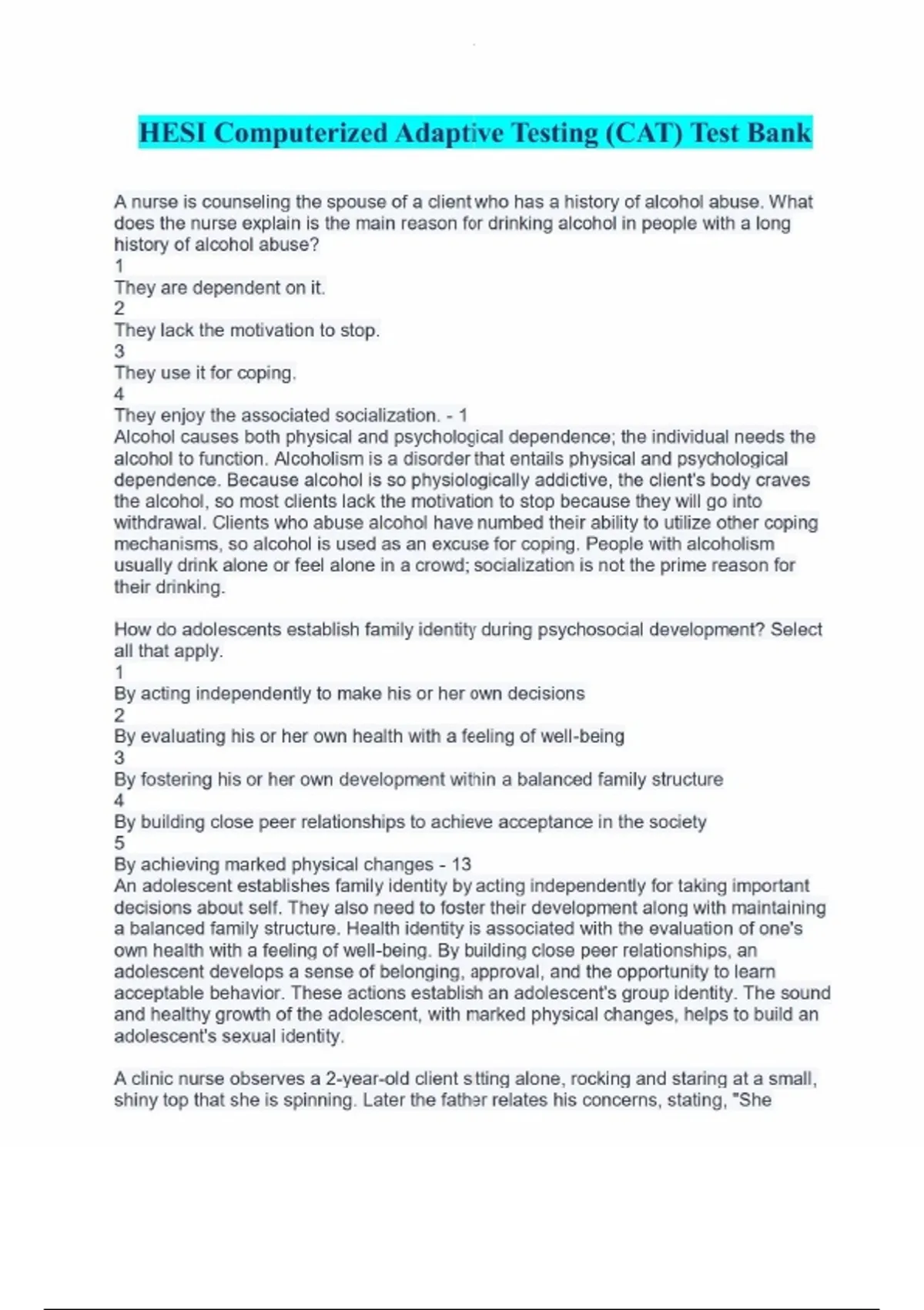 HESI Computerized Adaptive Testing (CAT) Test Bank Questions and Answers.HESI Computerized Adaptive Testing (CAT) Test Bank Questions and Answers.