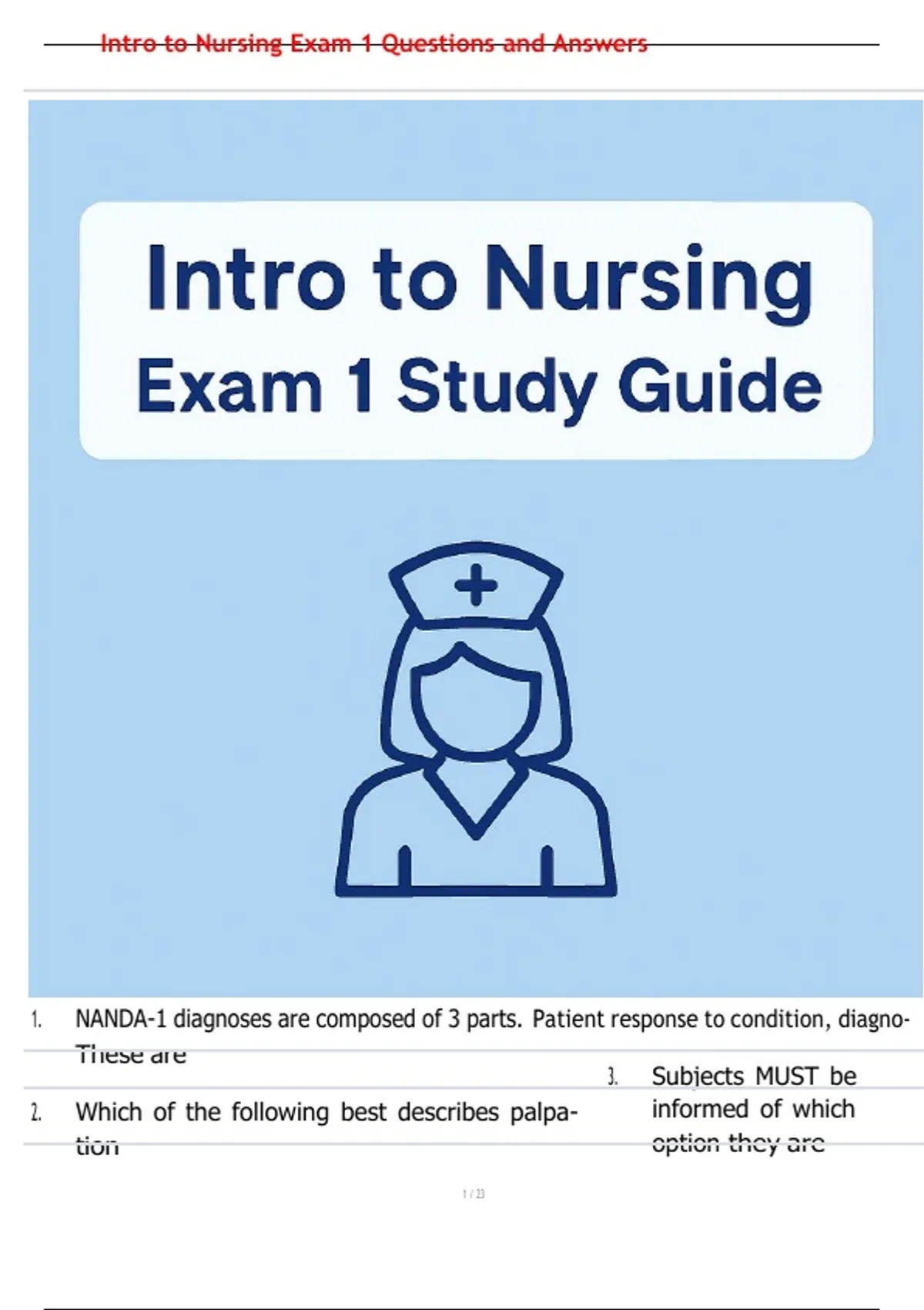 , Intro to Nursing Exam 1 Questions and Answers