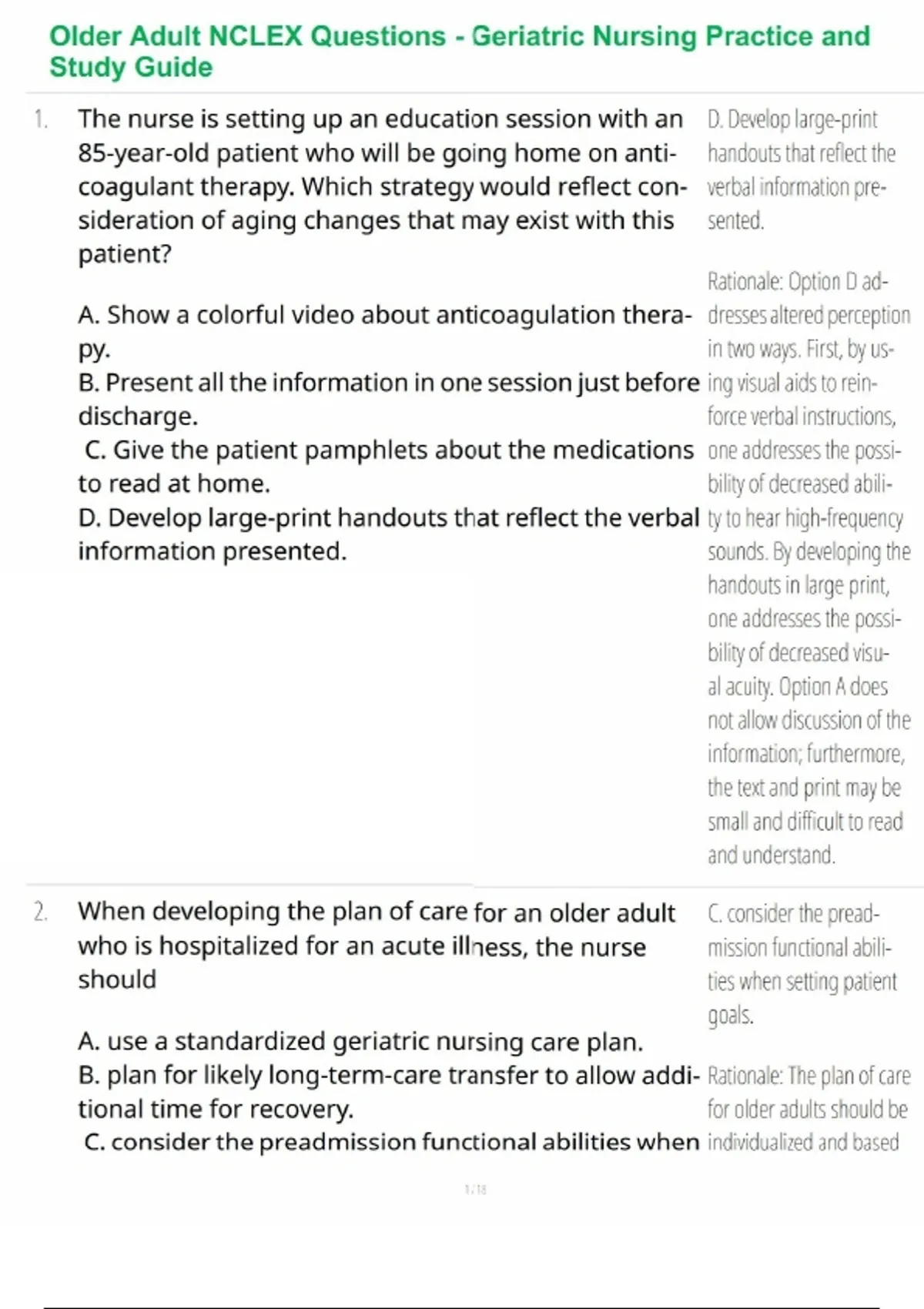Older Adult NCLEX Questions - Geriatric Nursing Practice and Study Guide