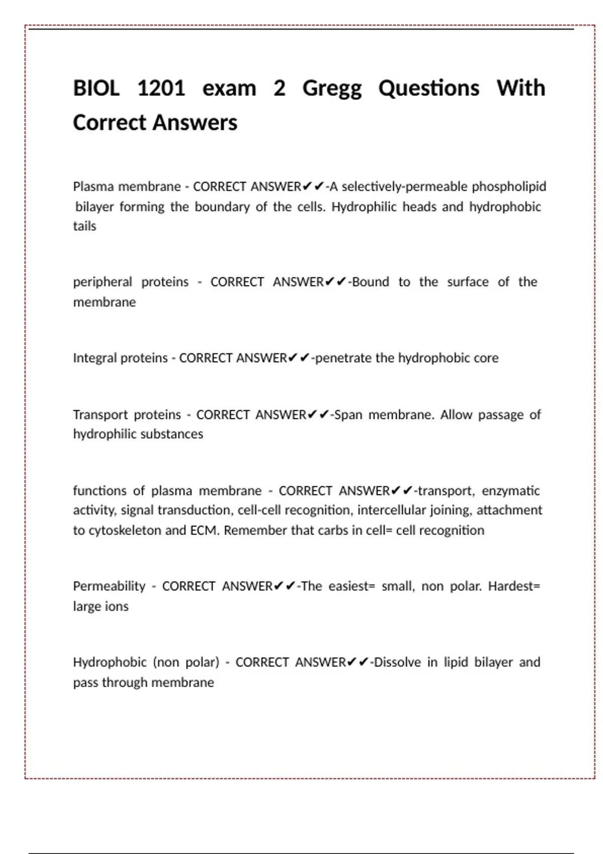 BIOL 1201 exam 2 Gregg Questions With Correct Answers