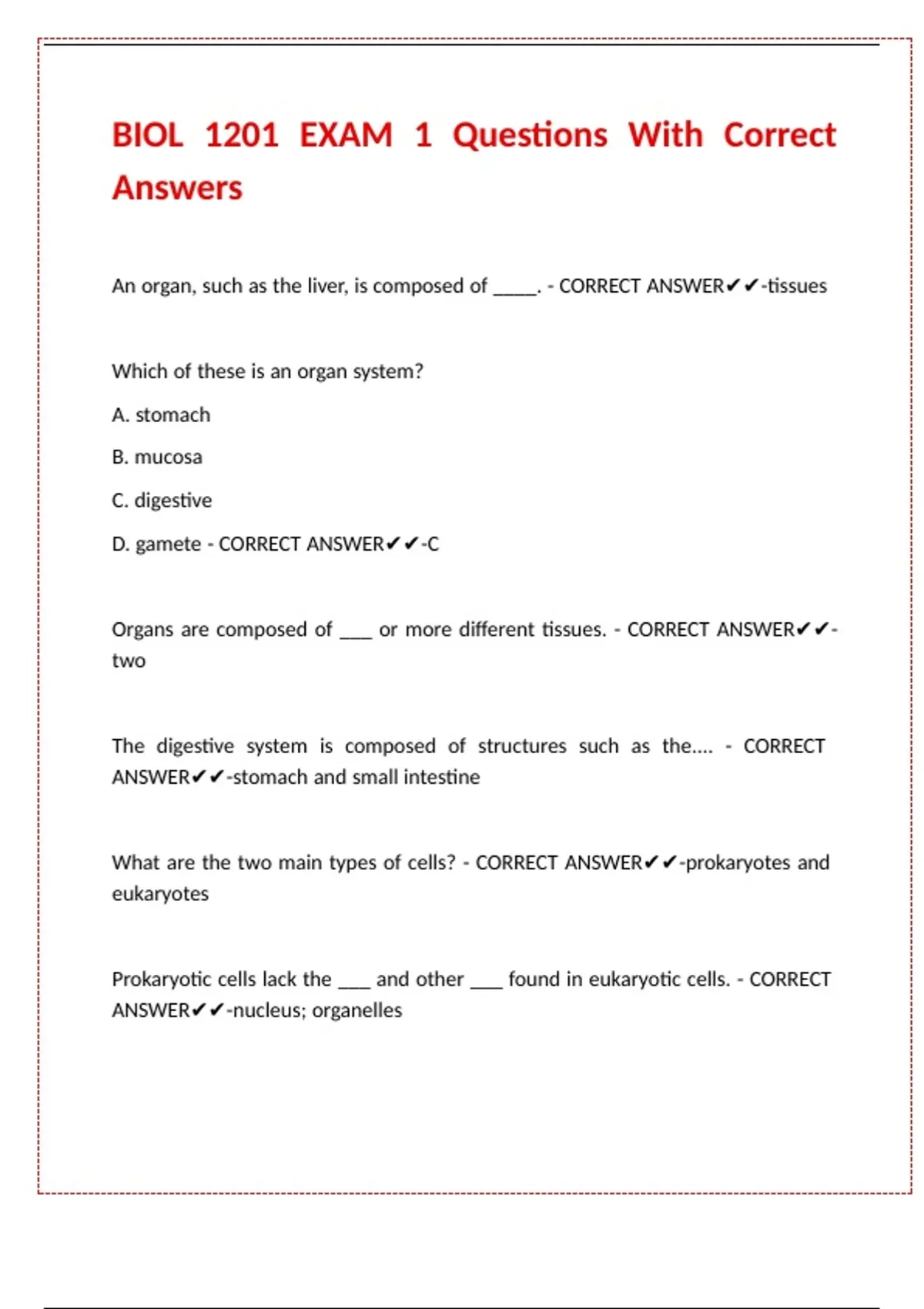 BIOL 1201 EXAM 1 Questions With Correct Answers