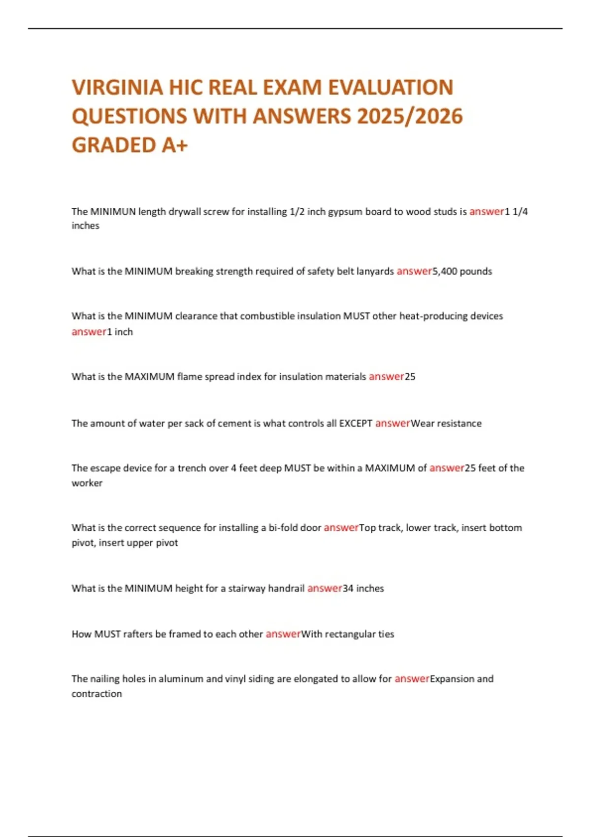 VIRGINIA HIC REAL EXAM EVALUATION QUESTIONS WITH ANSWERS 2025/2026 GRADED A+