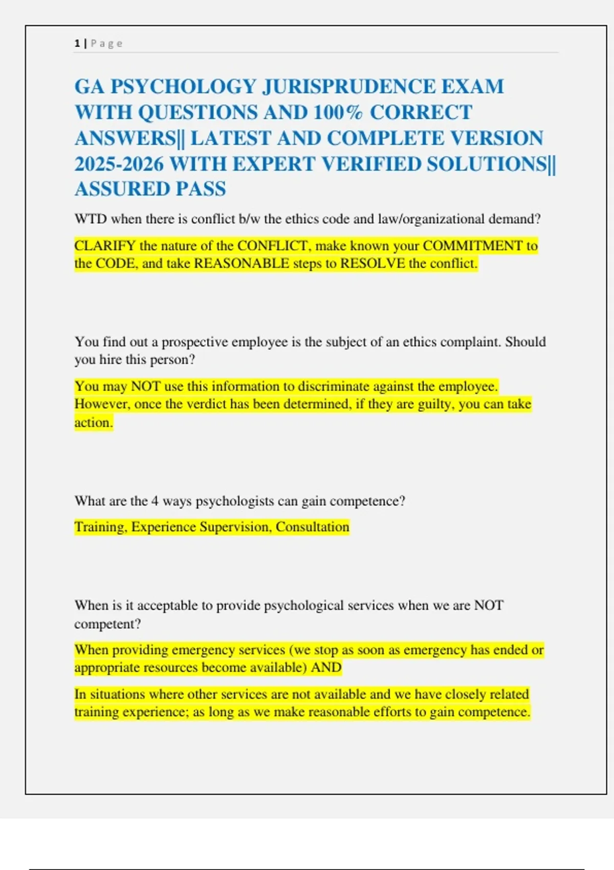 GA PSYCHOLOGY JURISPRUDENCE EXAM