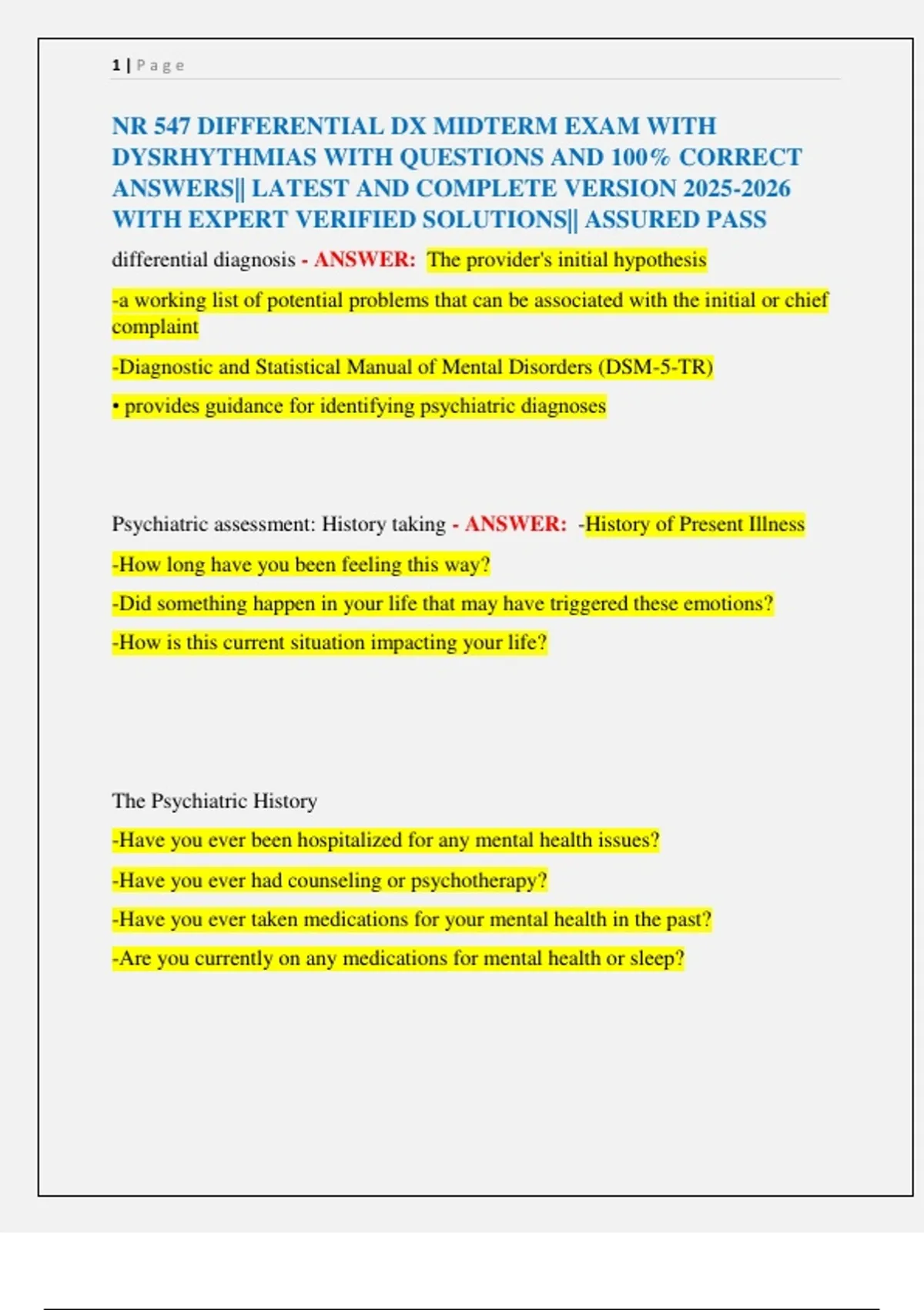 NR 547 DIFFERENTIAL DX MIDTERM EXAM WITH