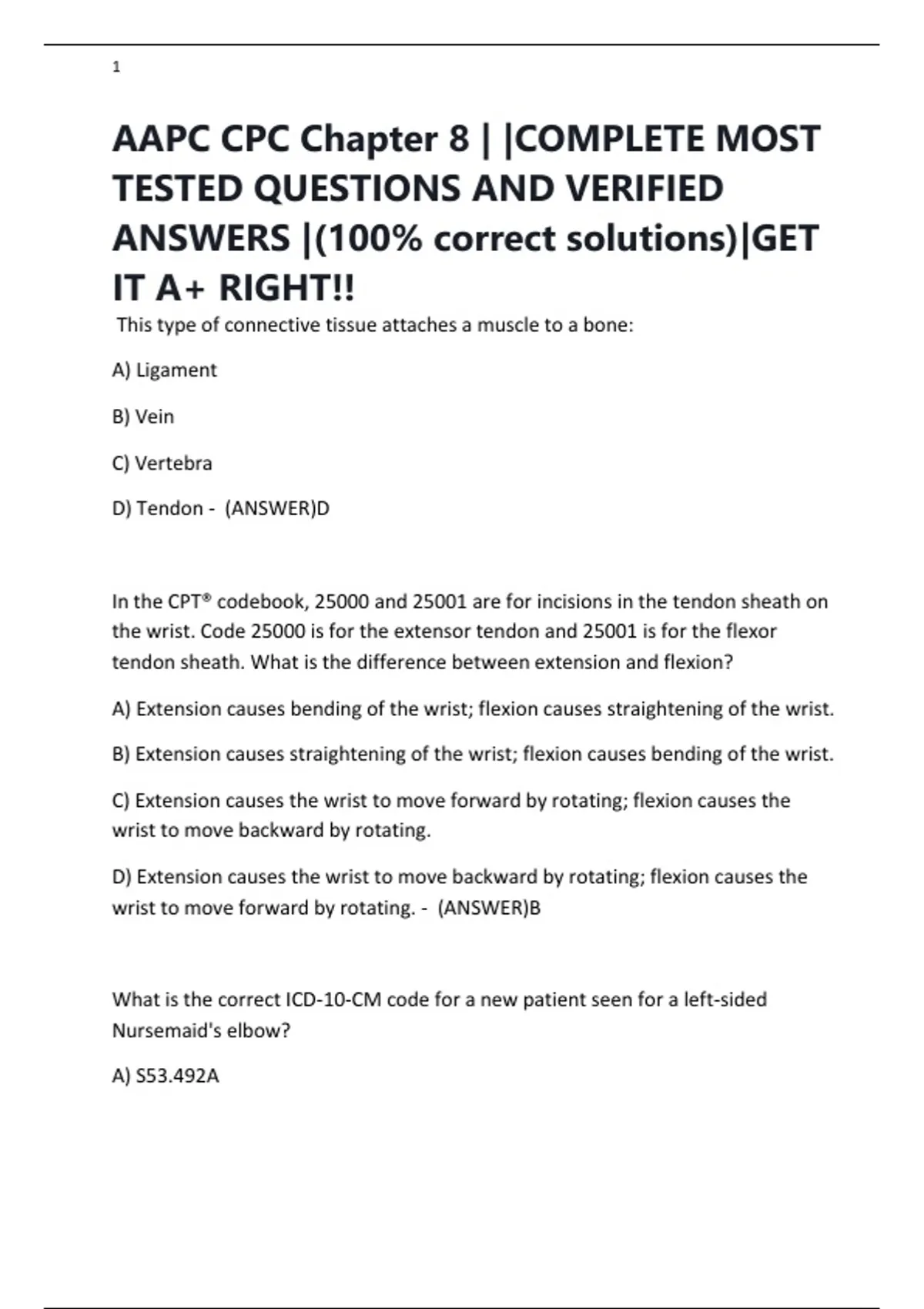AAPC CPC Chapter 8 | |COMPLETE MOST TESTED QUESTIONS AND VERIFIED ANSWERS |(100% correct solutions)|GET IT A+ RIGHT!!