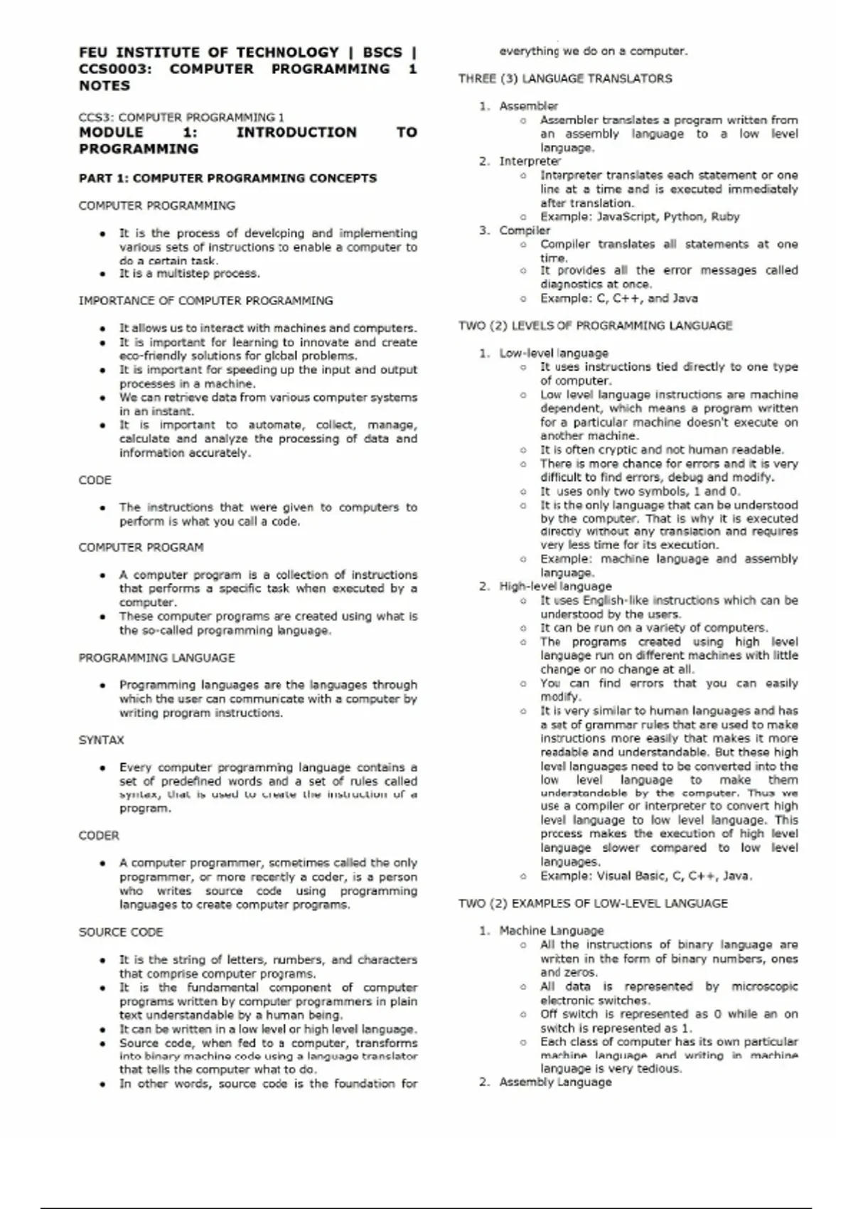 FEU Tech CCS0003-Computer Programming 1Module 1-7 Notes