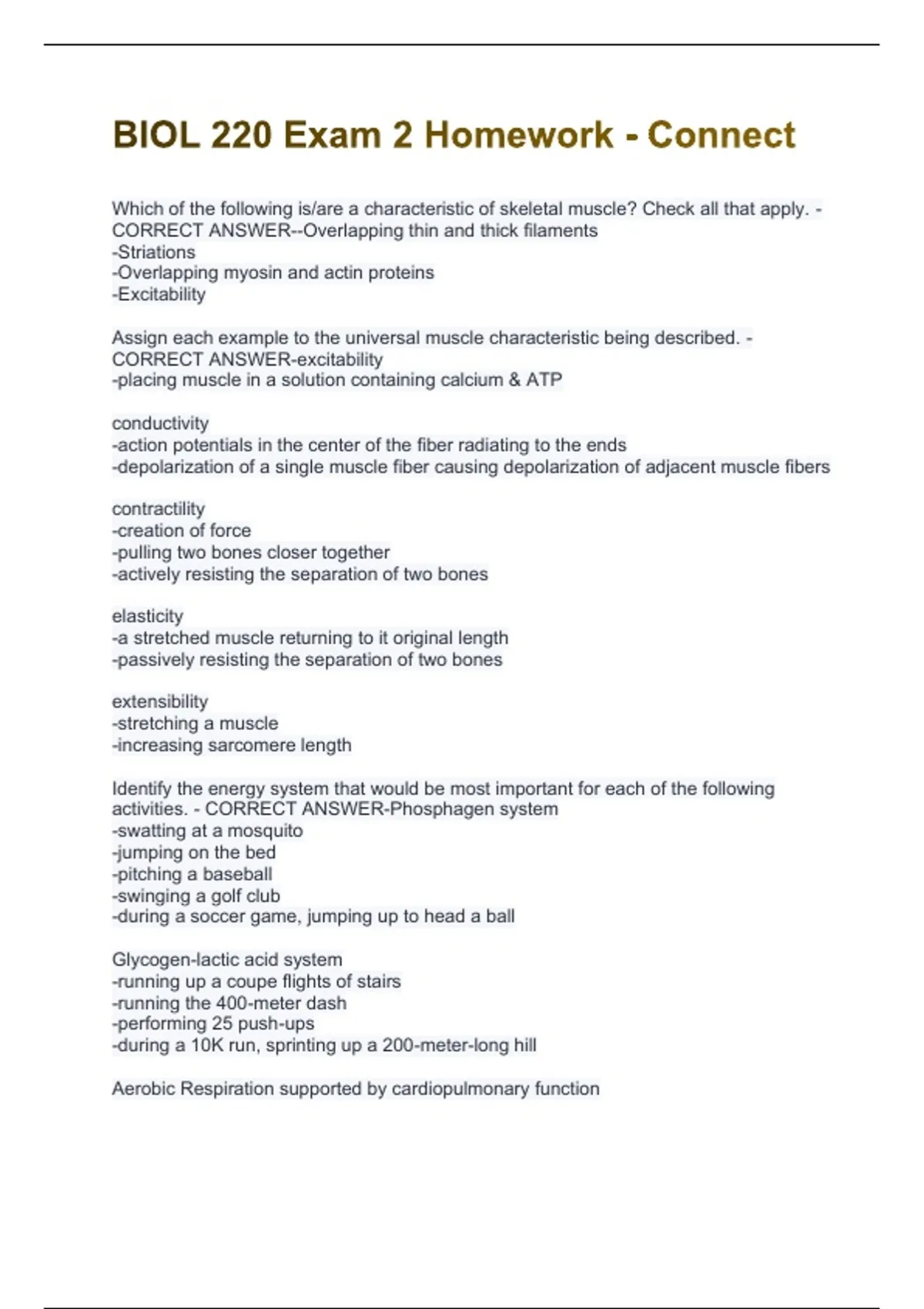 BIOL 220 Exam 2 Homework - Connect Questions & Answers Solved 100% Correct!!