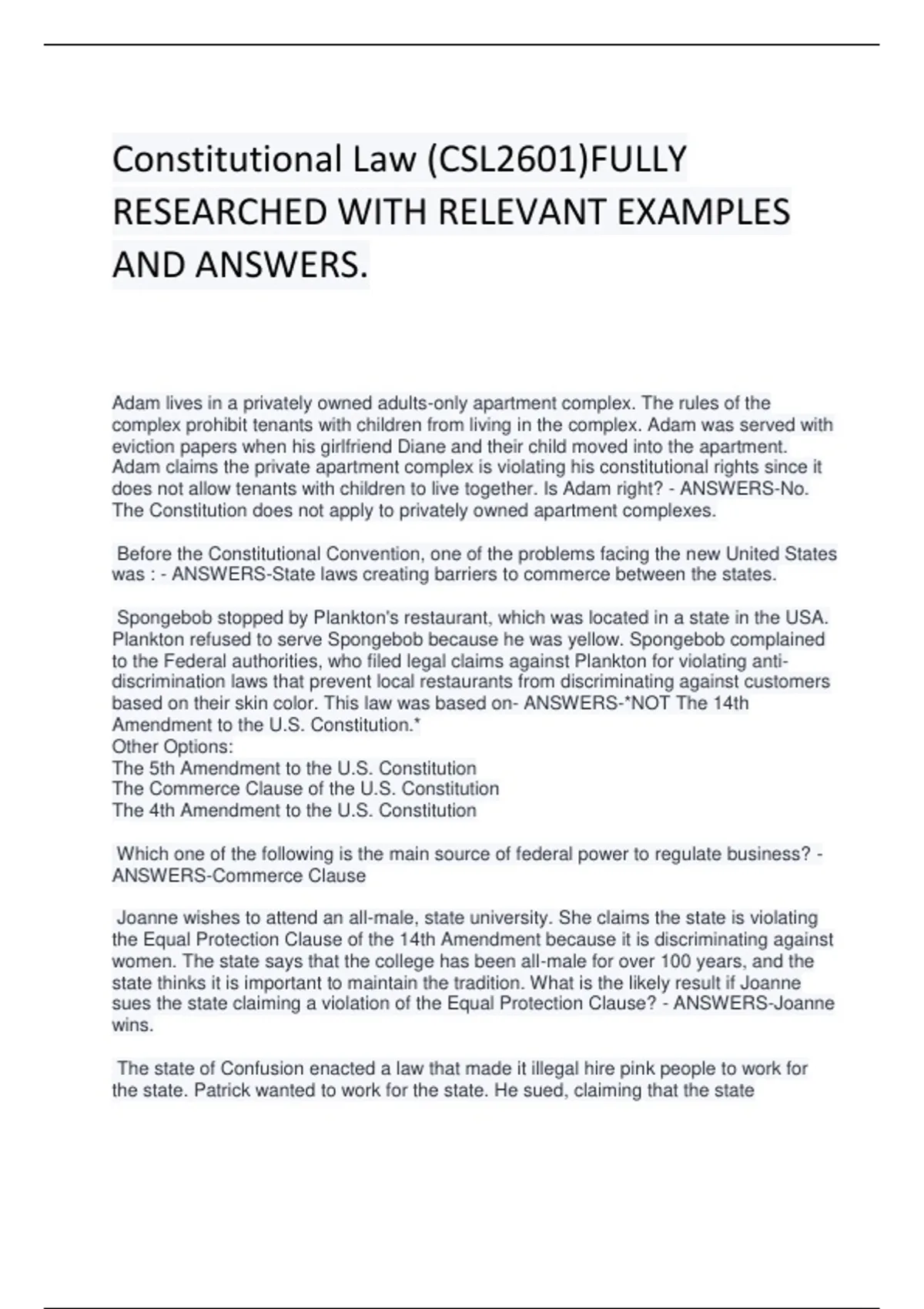 sues the state claiming a violation of the Equal Protection Clause? - ANSWERS-Joanne